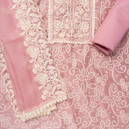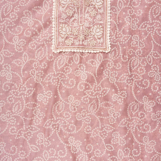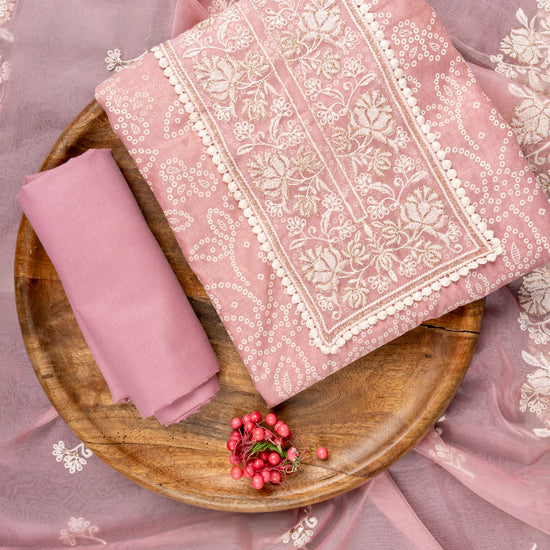 Panna Gajari Sequence, Threadwork & Bandhini Printed Chanderi Cotton Unstitched Salwar Suit With Organza Dupatta