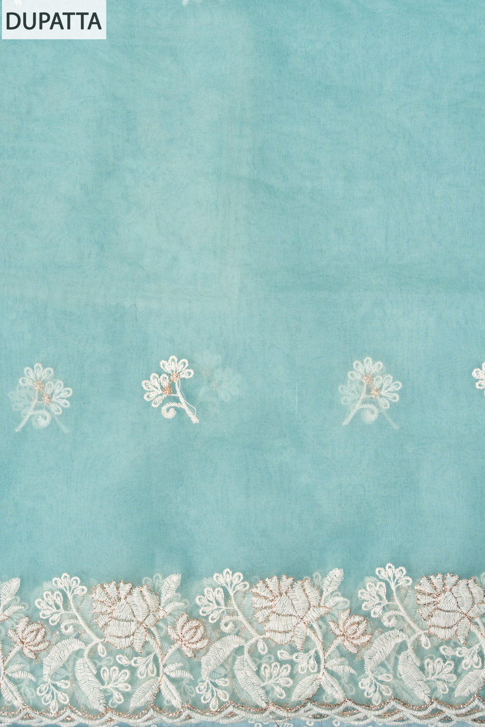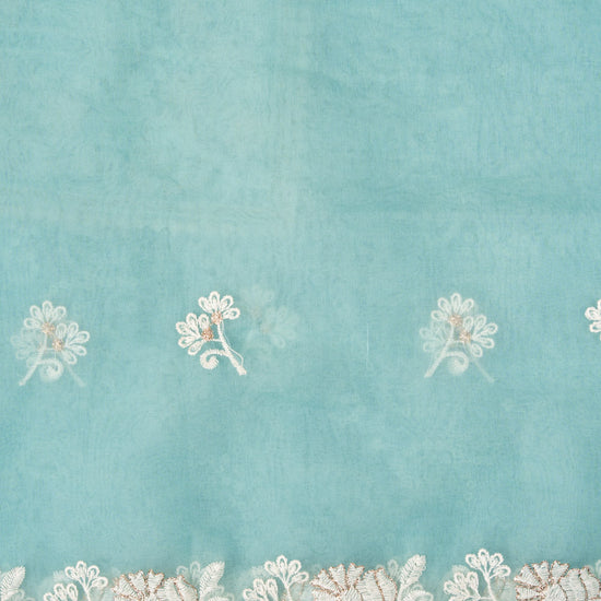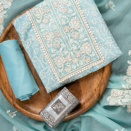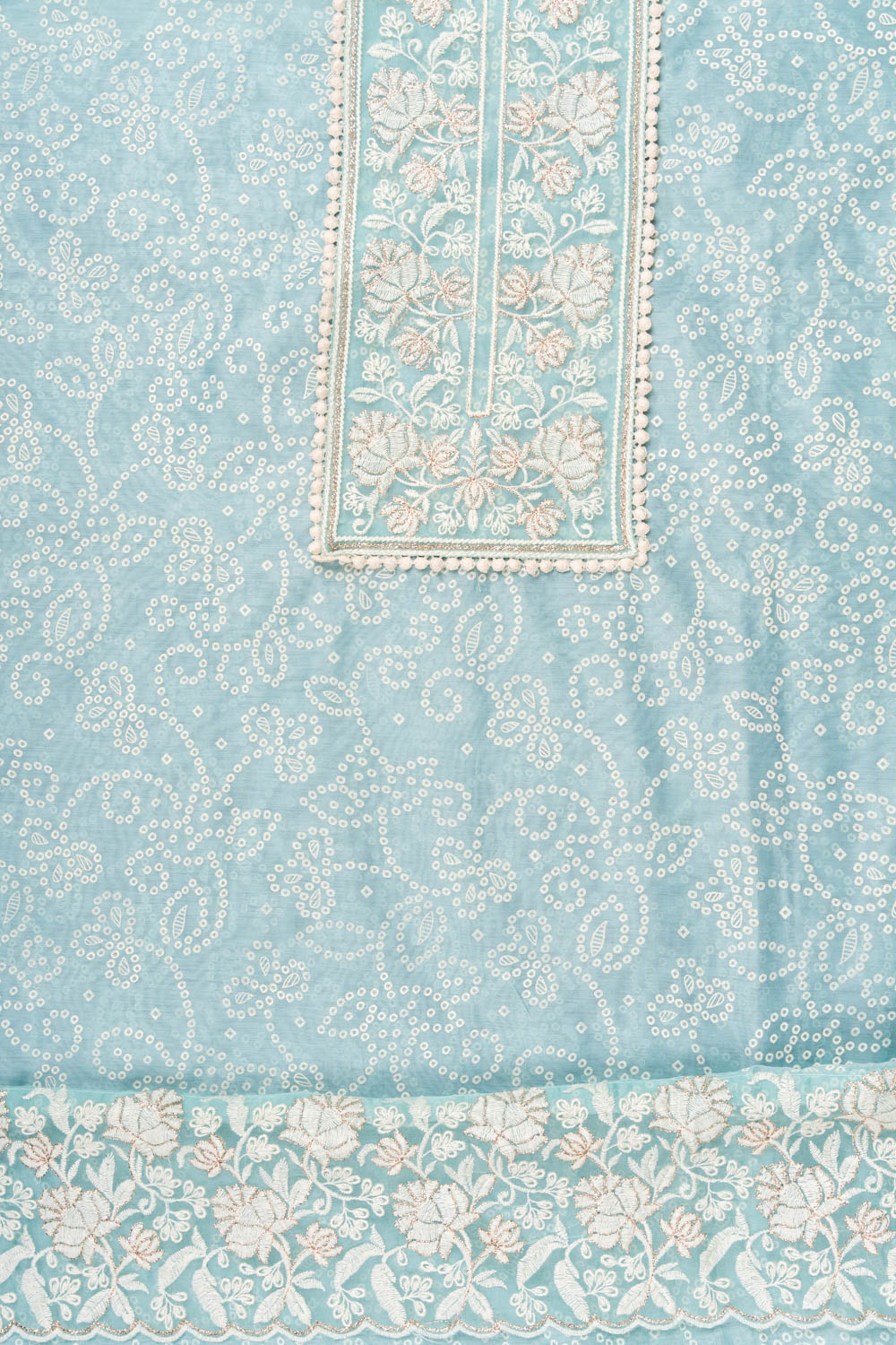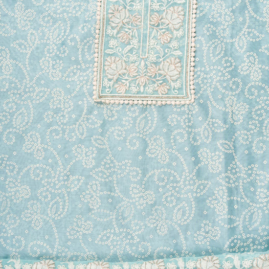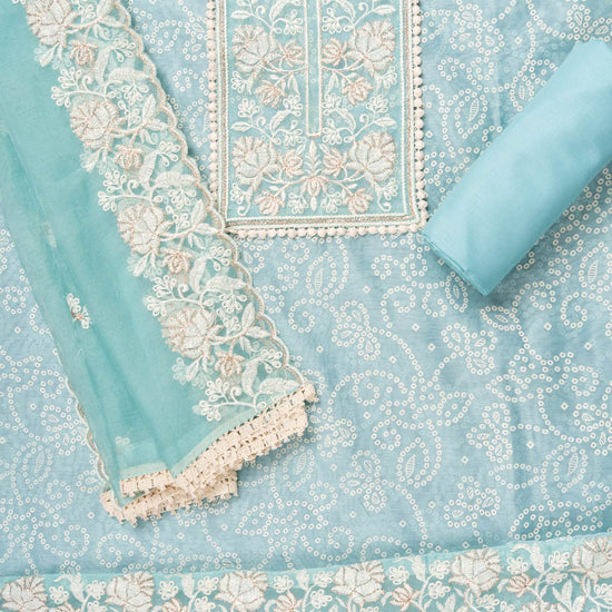 Panna Tea-green Sequence, Threadwork & Bandhini Printed Chanderi Cotton Unstitched Salwar Suit With Organza Dupatta