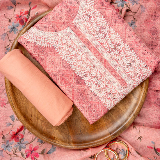 Panna Gajari Sequence, Threadwork & Digital Printed Cotton Unstitched Salwar Suit With Cotton Dupatta