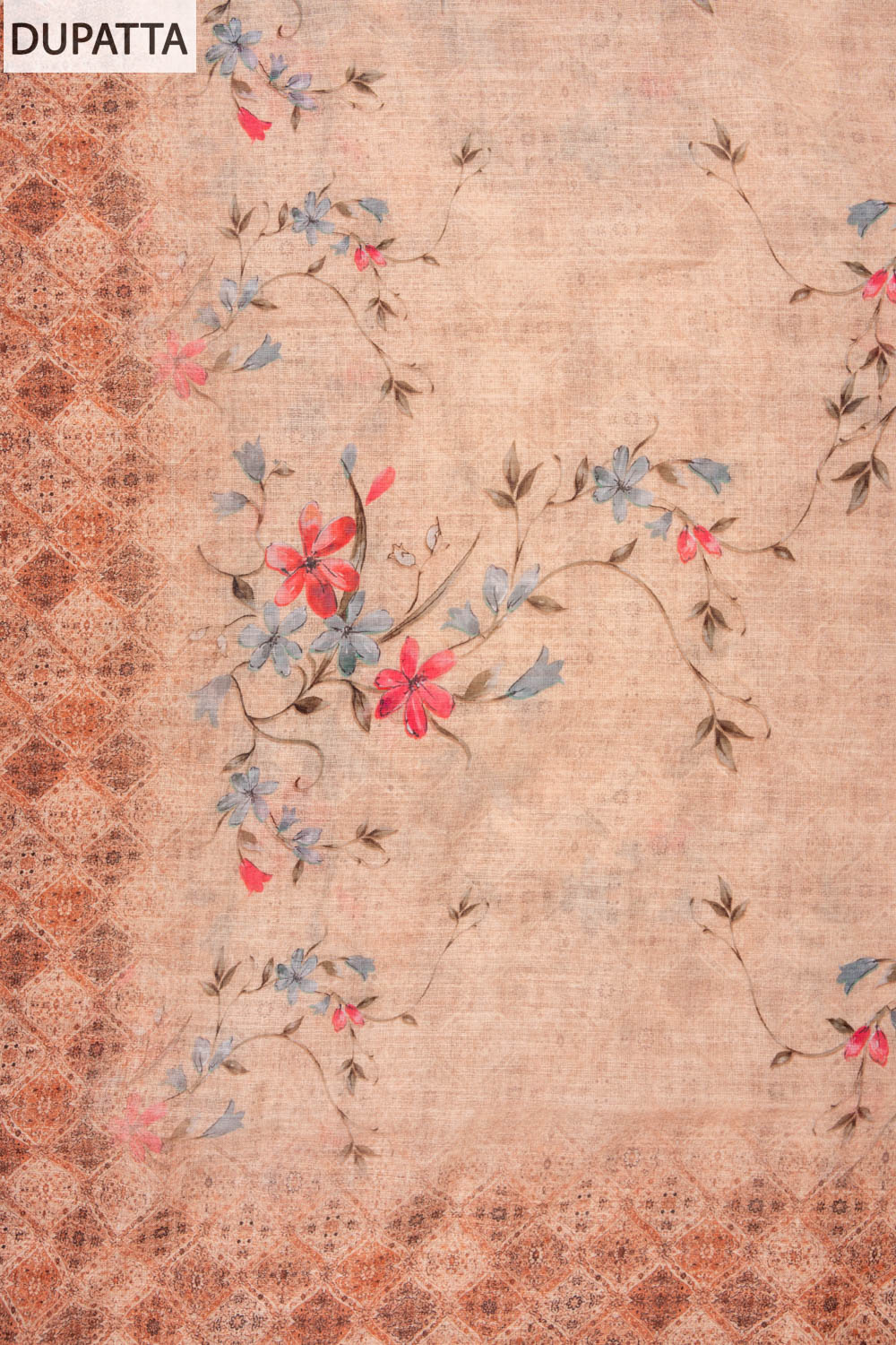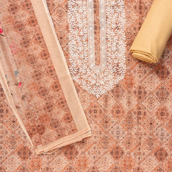Panna Mustard Sequence, Threadwork & Digital Printed Cotton Unstitched Salwar Suit With Cotton Dupatta
