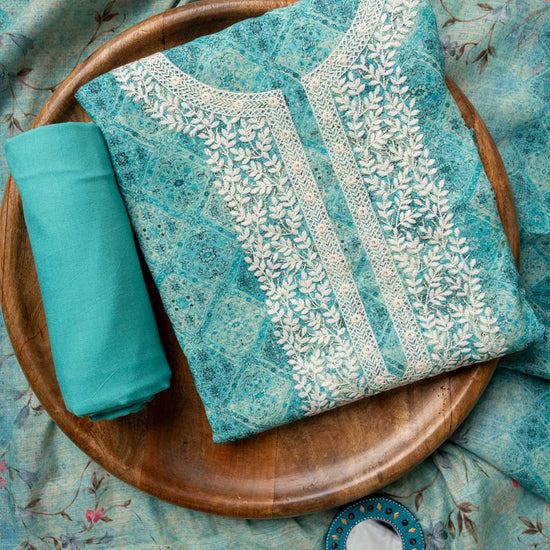 Tea-green Sequence, Threadwork & Digital Printed Cotton Unstitched Sal – The Panna Shop