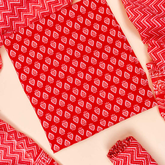 Panna Red Digital Printed Cotton Unstitched Salwar Suit With Cotton Dupatta