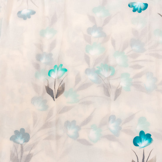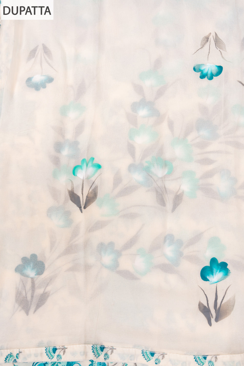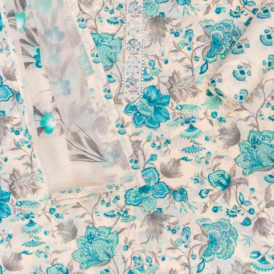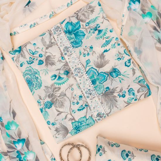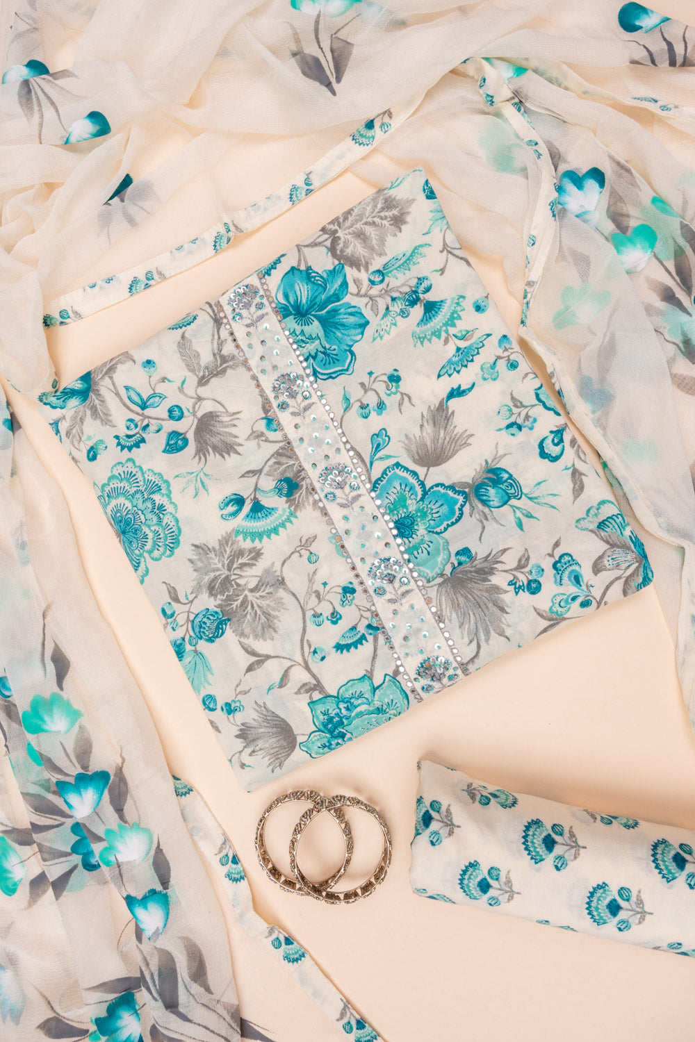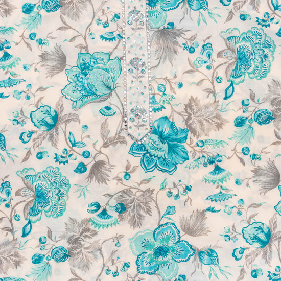 Panna White Firozi Floral Printed Cotton Unstitched Salwar Suit With Cotton Dupatta