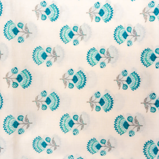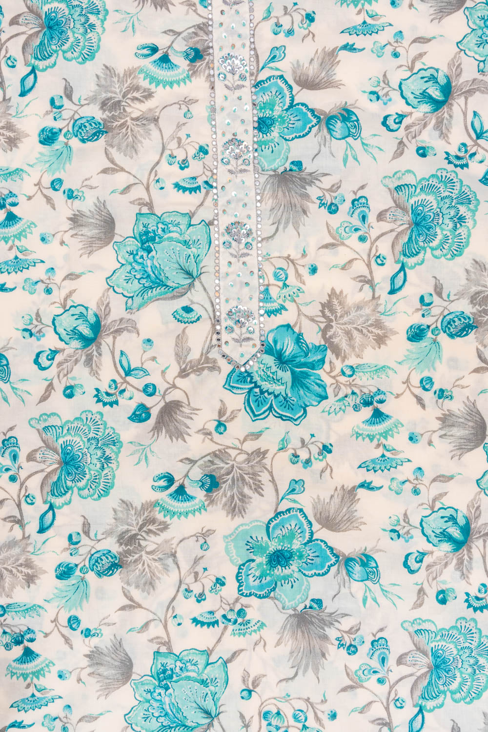 White Firozi Floral Printed Cotton Unstitched Salwar Suit With Cotton – The Panna Shop