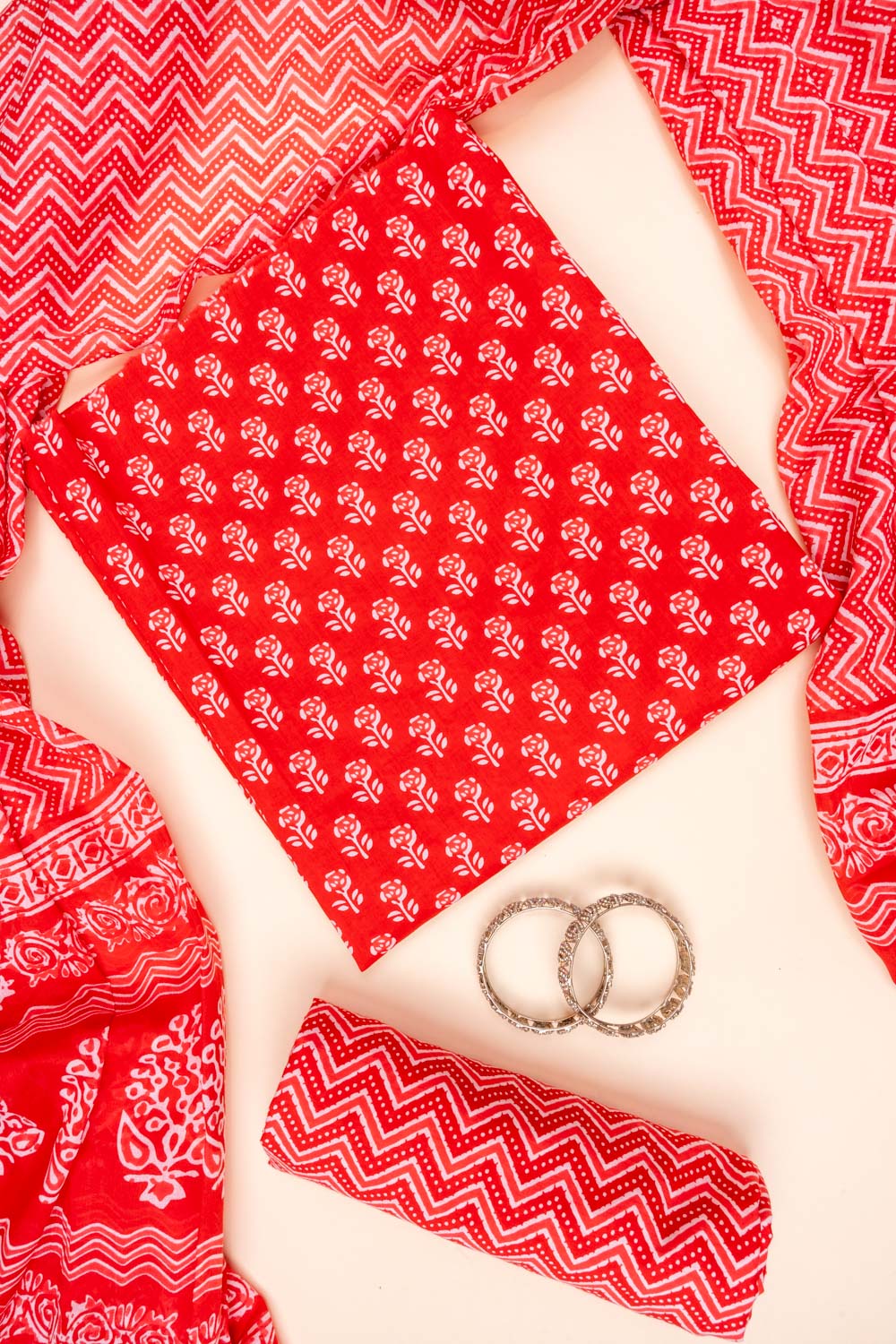 Panna Red Digital Printed Cotton Unstitched Salwar Suit With Cotton Dupatta