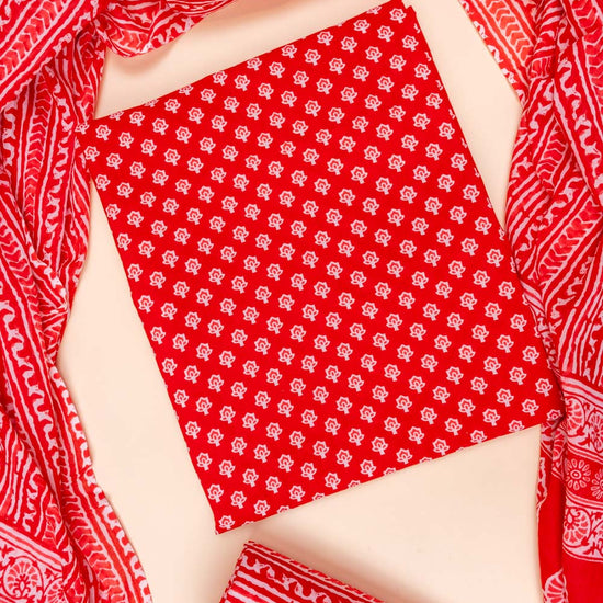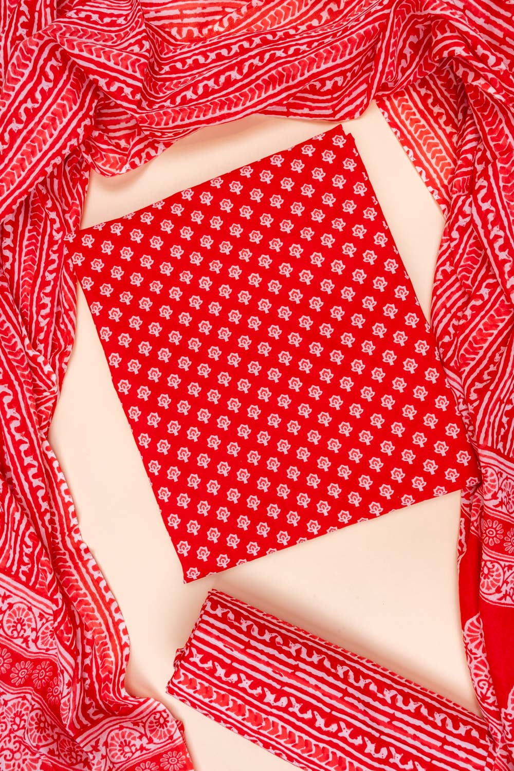 Red Digital Printed Cotton Unstitched Salwar Suit With Cotton Dupatta – The Panna Shop