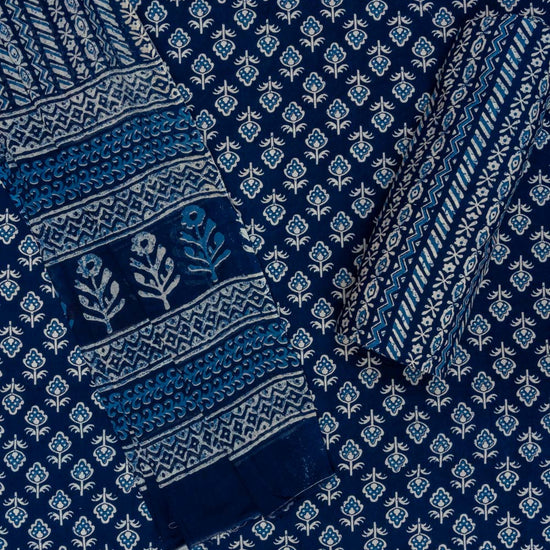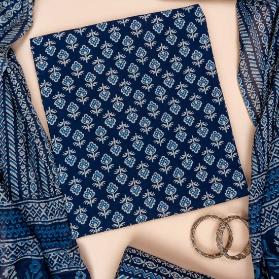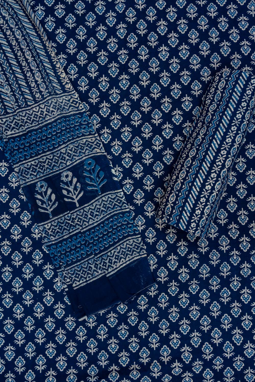 Panna Navy Blue Digital Printed Cotton Unstitched Salwar Suit With Cotton Dupatta