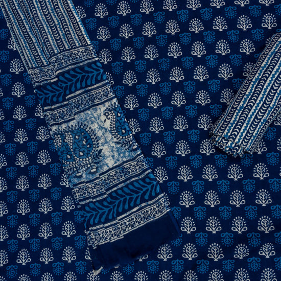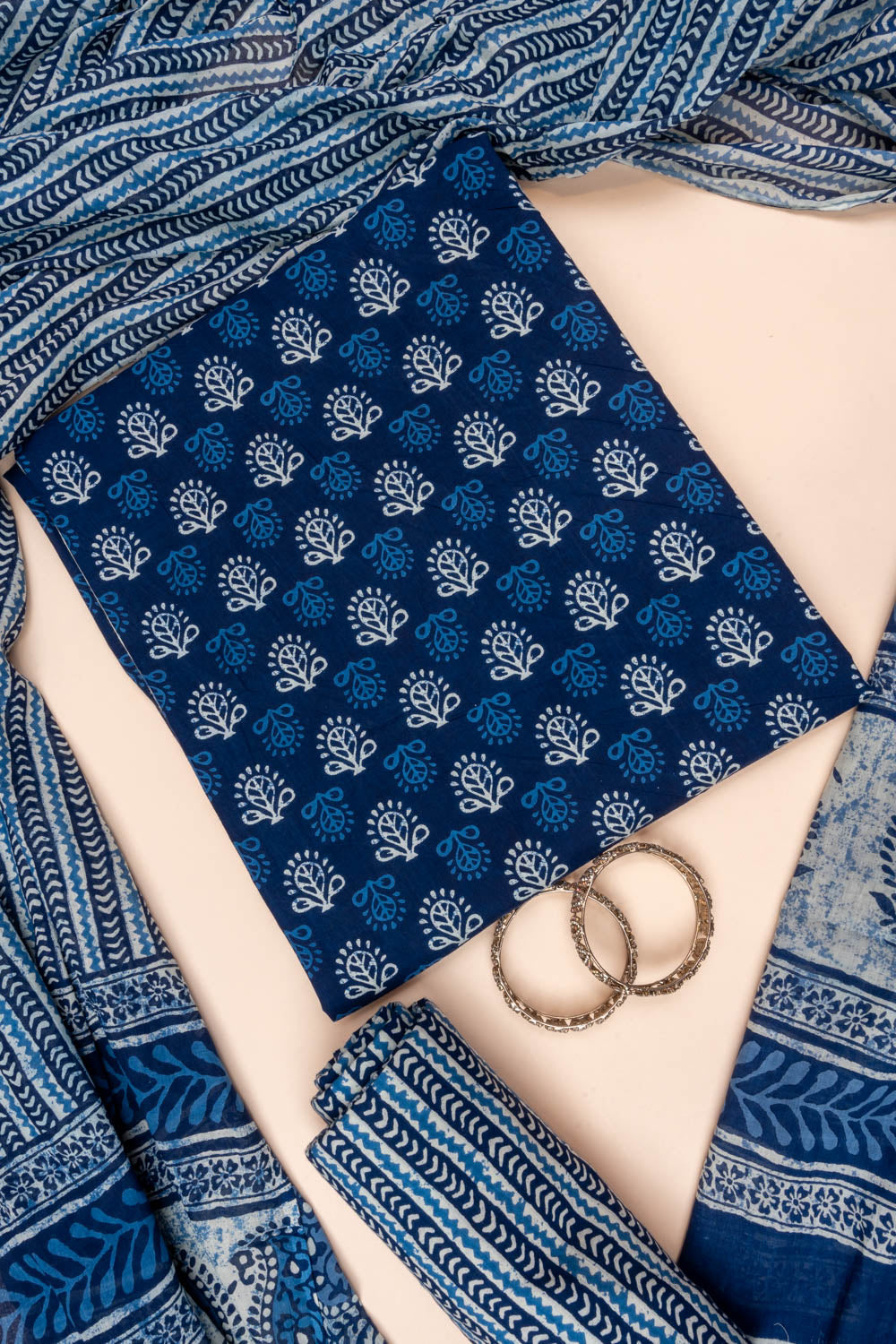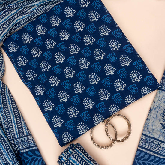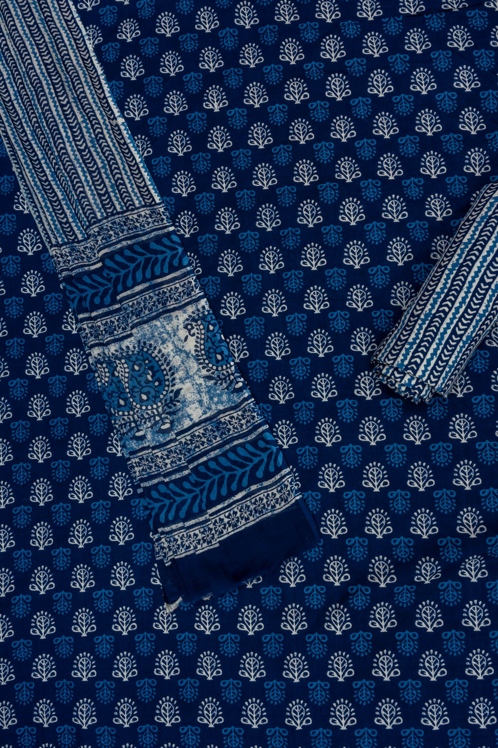 Navy Blue Digital Printed Cotton Unstitched Salwar Suit With Cotton Du – The Panna Shop