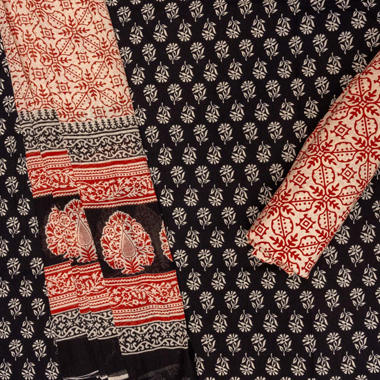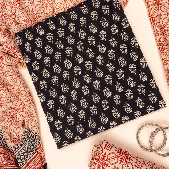 Panna Tussar And Black Digital Printed Cotton Unstitched Salwar Suit With Cotton Dupatta