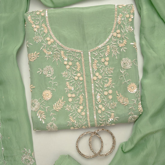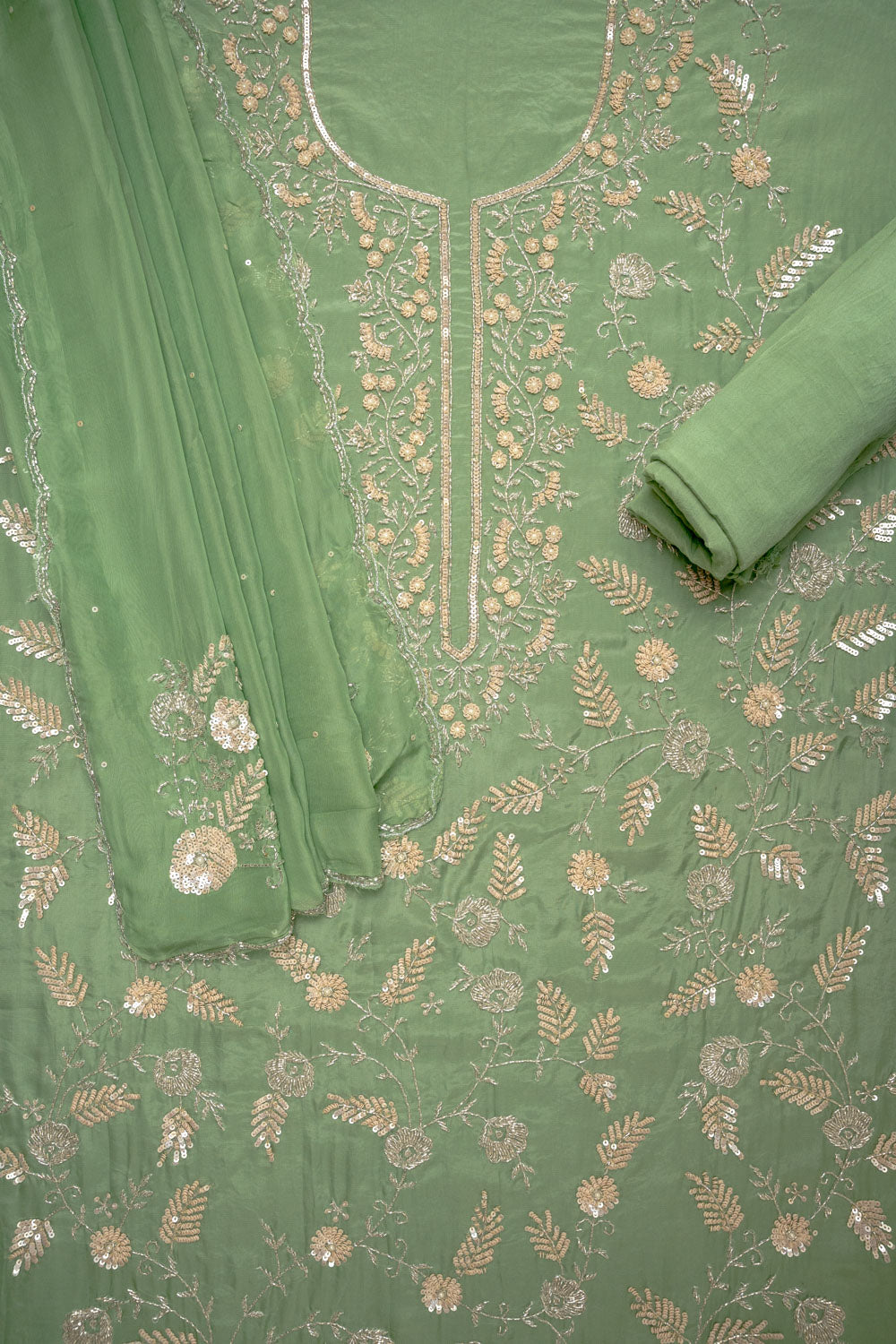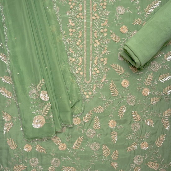 Panna Wrapped in Elegance Pista Crepe Unstitched Salwar Kameez & Georgette Dupatta