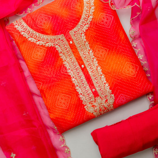 Panna Soft As A Sunrise Coral Organza Unstitched Salwar Kameez With Organza Dupatta