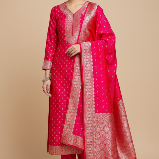 Rani Banarasi Silk Unstitched Salwar Suit With Silk Dupatta – The Panna Shop