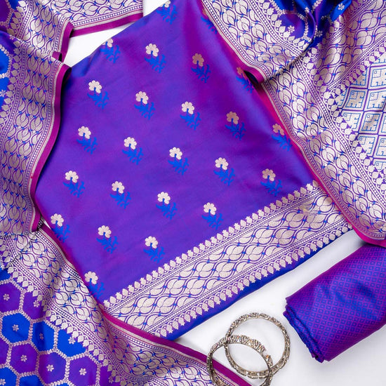 Panna Purple Banarasi Silk Unstitched Salwar Suit With Silk Dupatta