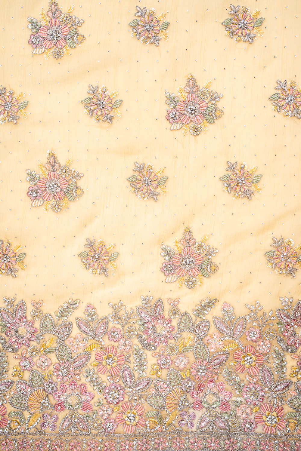 Highlighted by intricate Bead, Sequence & Zari Threadwork, this unstitched suit is crafted from Organza for Formal Occasion. Maintain with Dry Wash / Dry Clean.