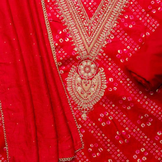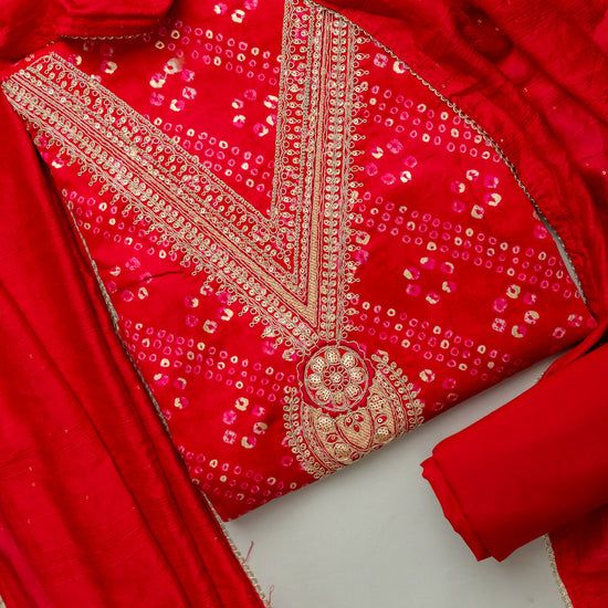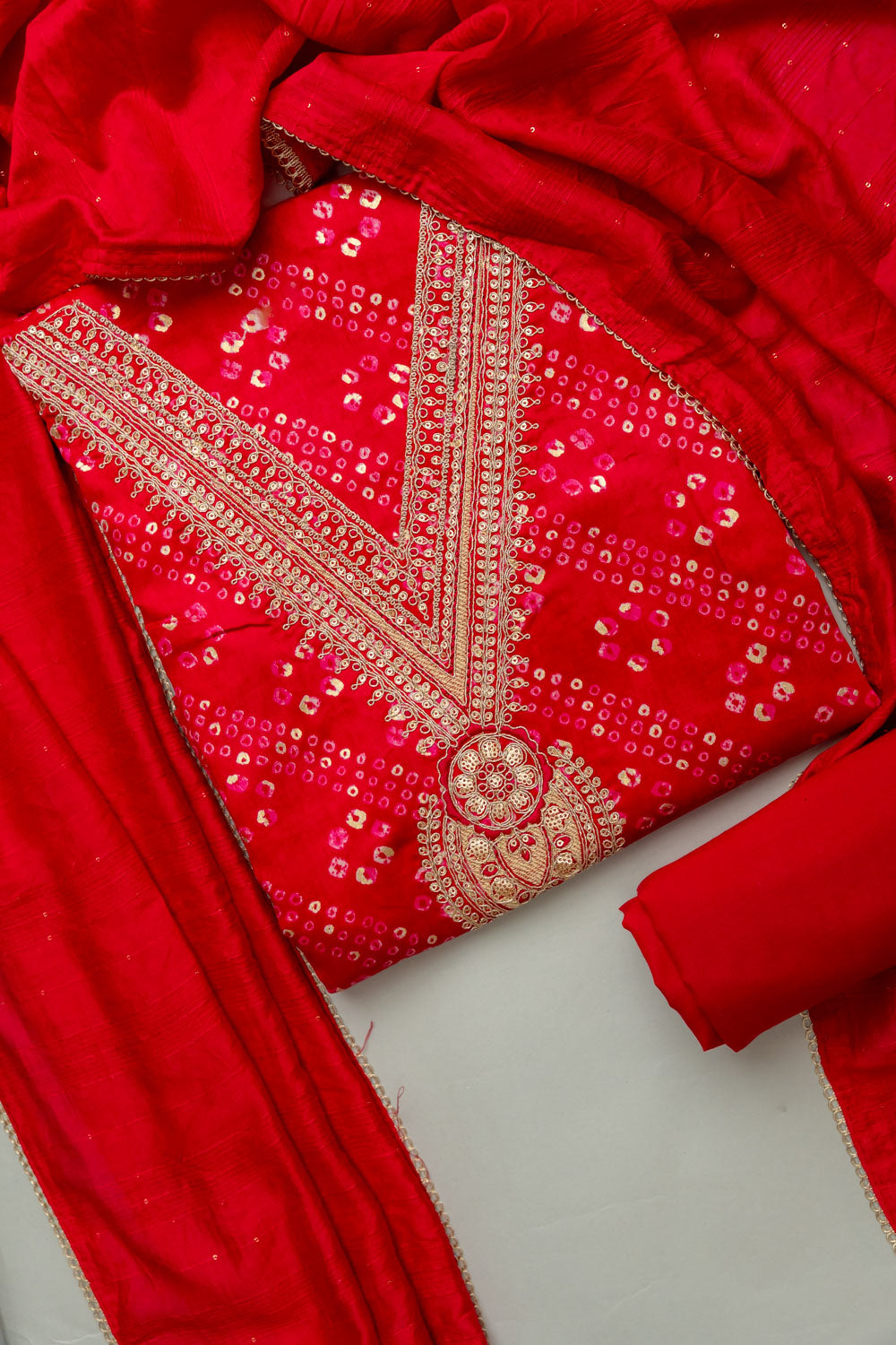 Panna Grace Redefined Red Unstitched Cotton Salwar Kameez With Cotton Dupatta