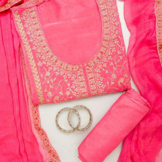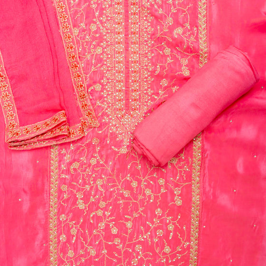 Panna Glow Different Gajari Unstitched Crepe Salwar Kameez With Chiffon Dupatta
