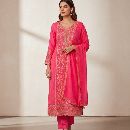 Glow Different Gajari Unstitched Crepe Salwar Kameez With Chiffon Dupa – The Panna Shop