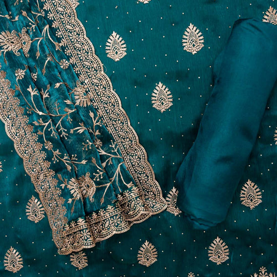 Panna Statement Look Peacock Organza Unstitched Salwar Kameez With Organza Dupatta