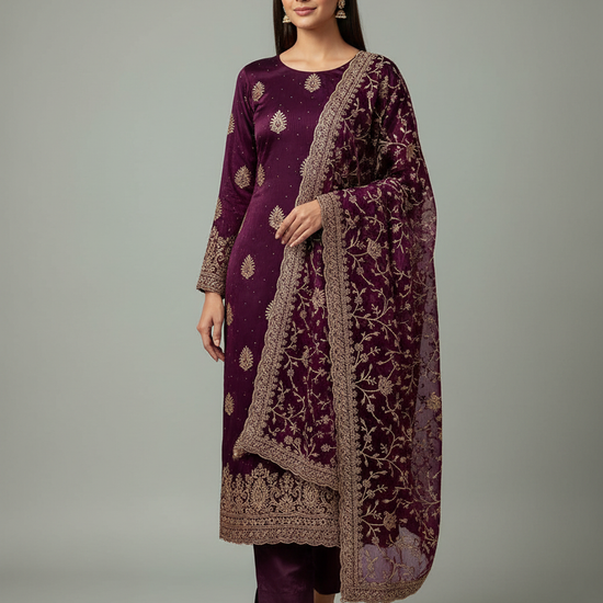 Deep Hues Wine Organza Unstitched Salwar Kameez With Organza Dupatta – The Panna Shop