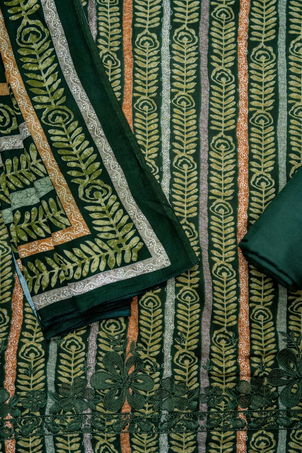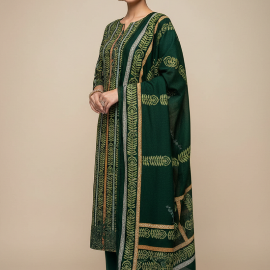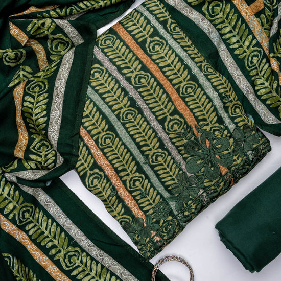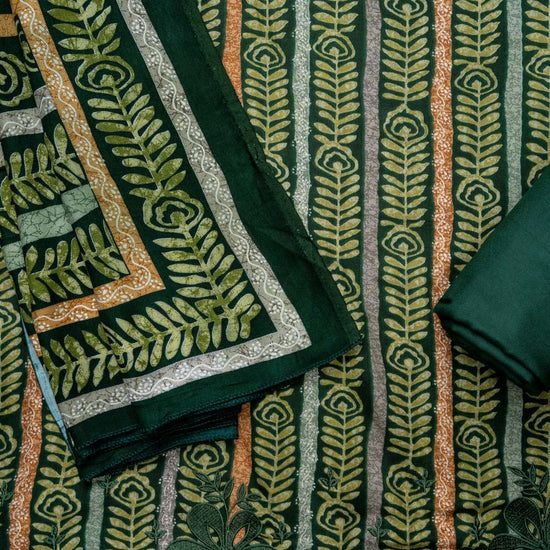 Panna Bottle Green Pashmina Unstitched Salwar Suit With Pashmina Dupatta