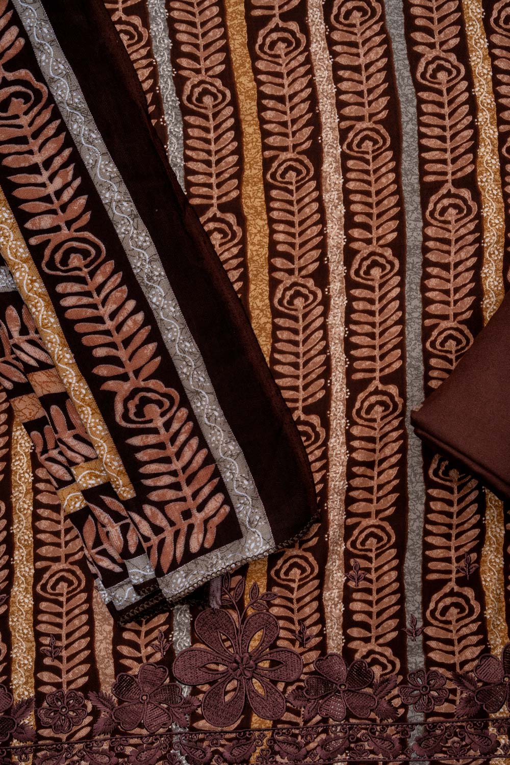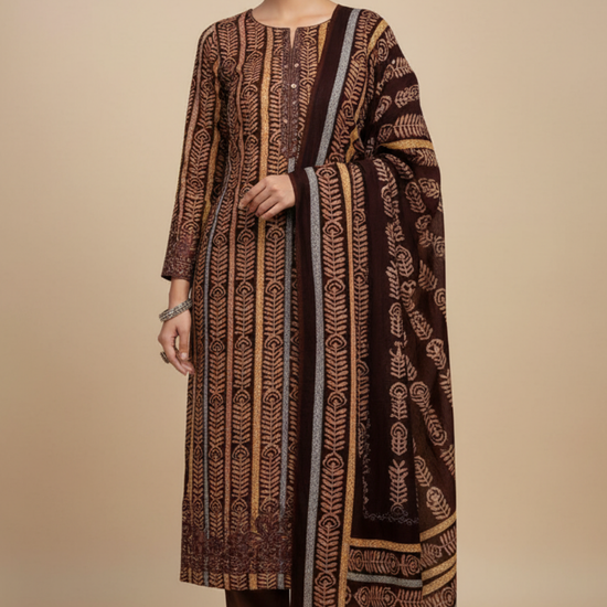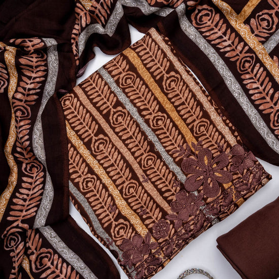 Garnet Pashmina Unstitched Salwar Suit With Pashmina Dupatta