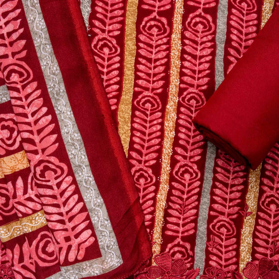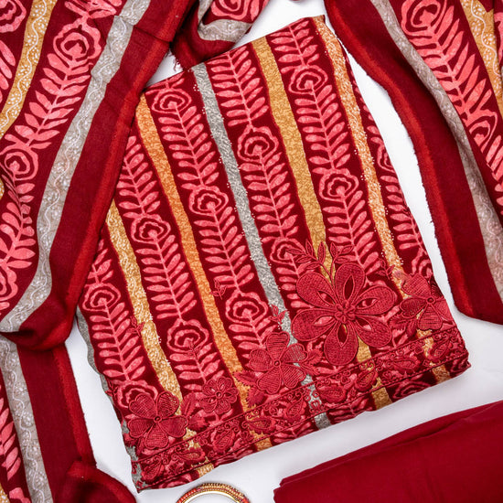 Maroon Pashmina Unstitched Salwar Suit With Pashmina Dupatta