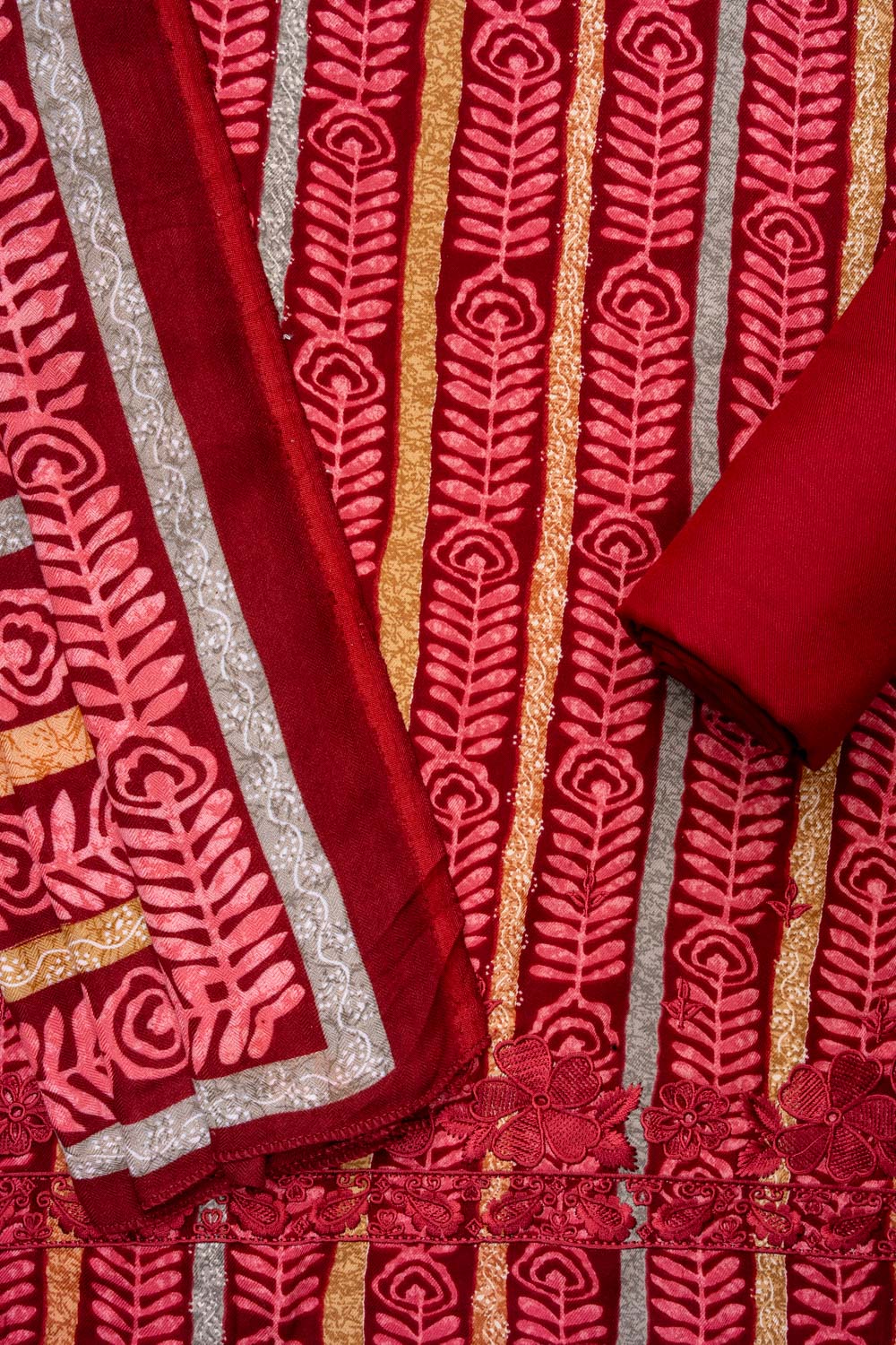 Maroon Pashmina Unstitched Salwar Suit With Pashmina Dupatta – The Panna Shop