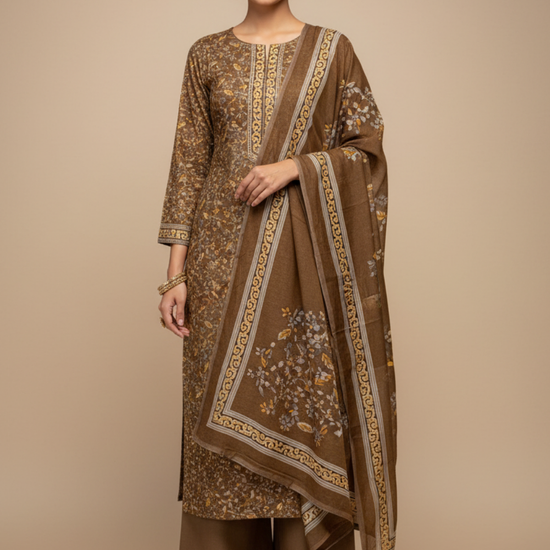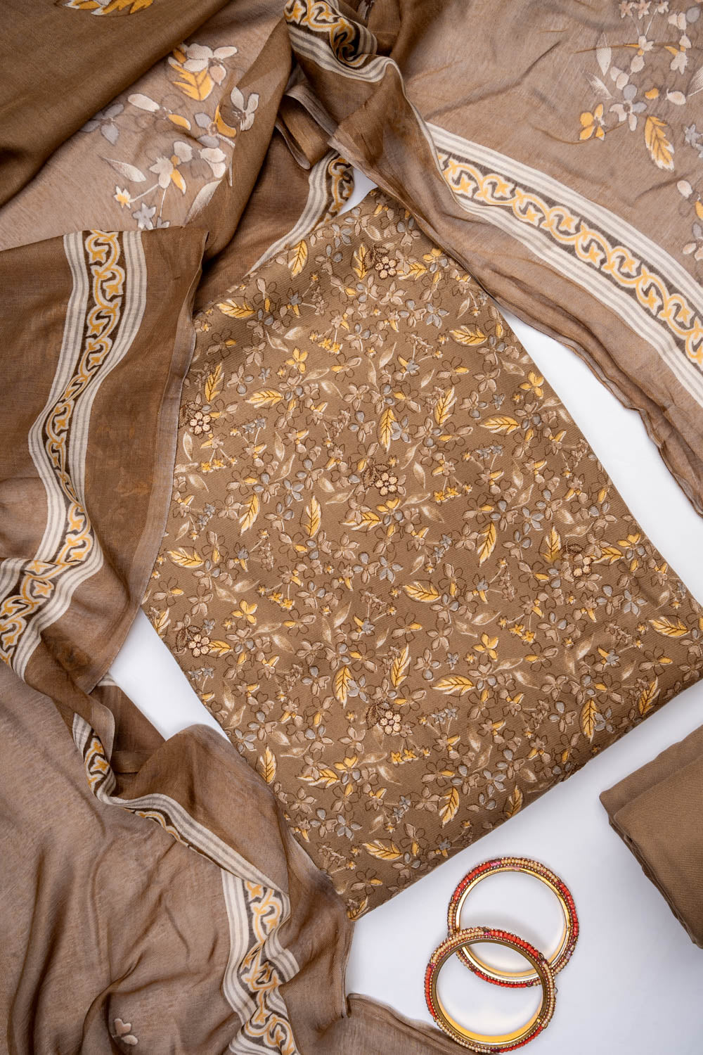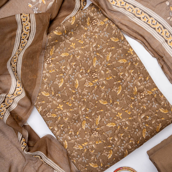 Panna Tussar Pashmina Unstitched Salwar Suit With Cotton Dupatta