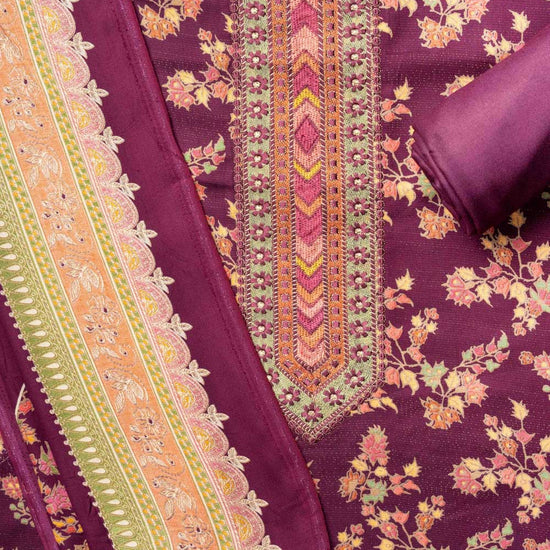 Panna Garnet Pashmina Unstitched Salwar Suit With Pashmina Dupatta