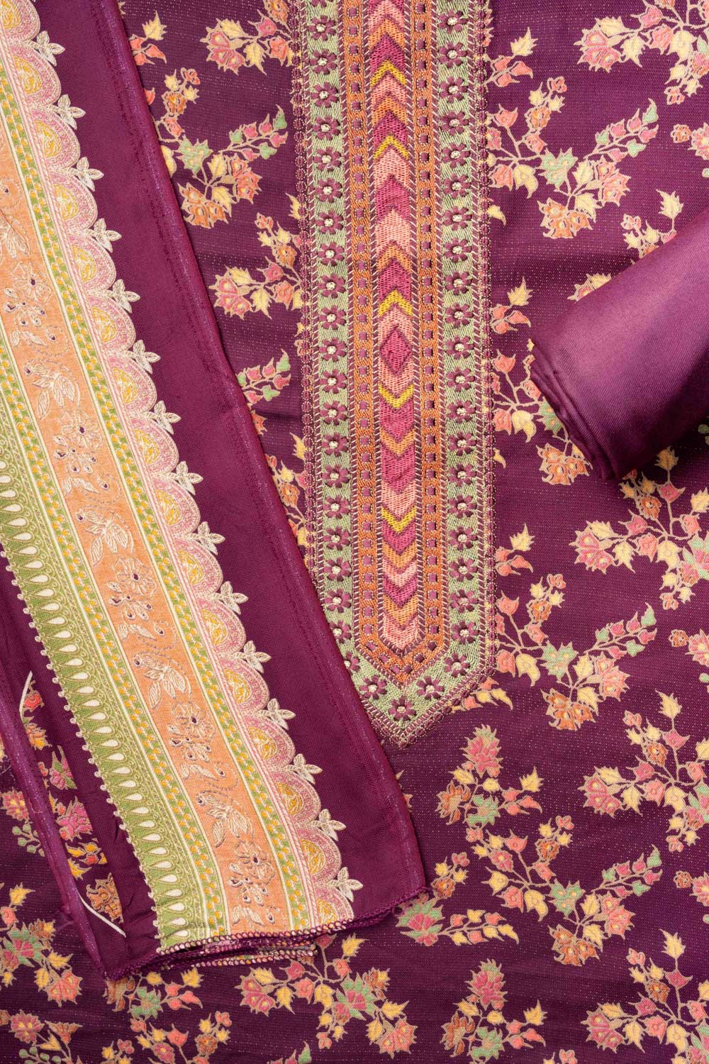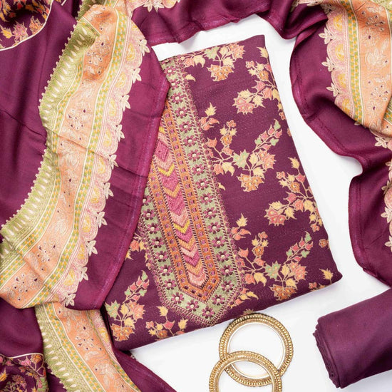 Garnet Pashmina Unstitched Salwar Suit With Pashmina Dupatta – The Panna Shop