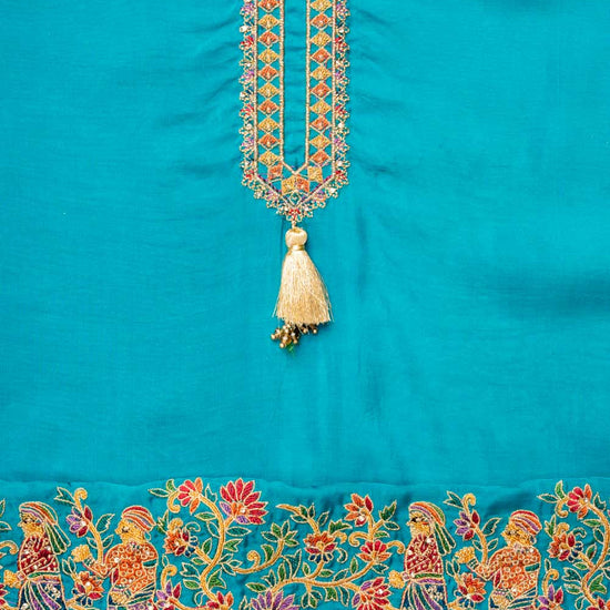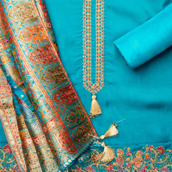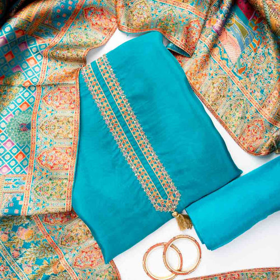 Panna Rama Organza Unstitched Salwar Suit With Dola Silk Dupatta
