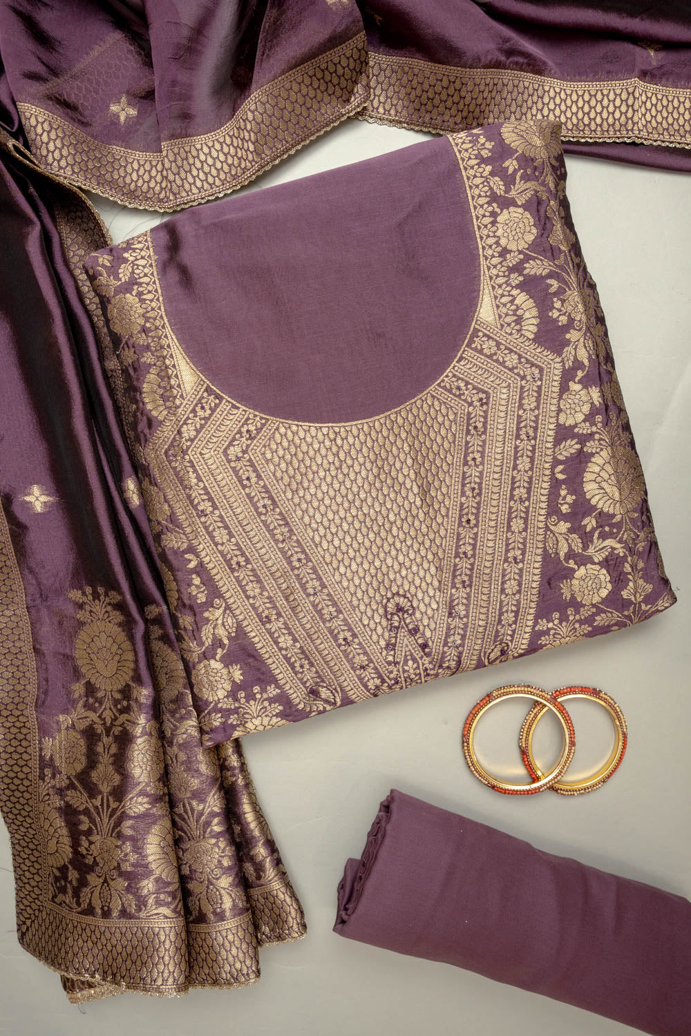 Panna Regal And Radiant Garnet Shimmer Unstitched Salwar Kameez With Cotton Dupatta