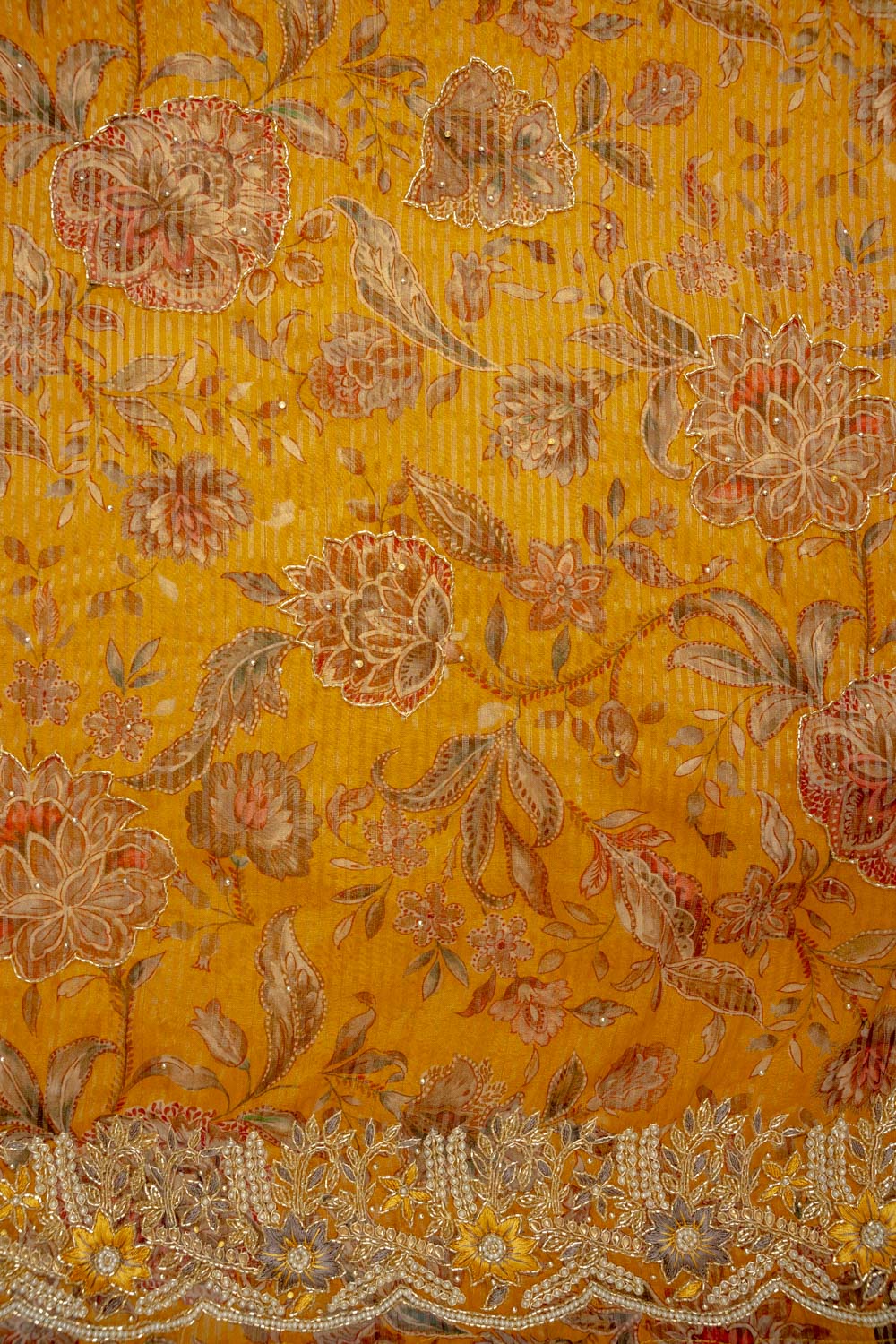 Work : Bead work , Cutdana work , Dabka work , Floral print , Kundan work , Thread work