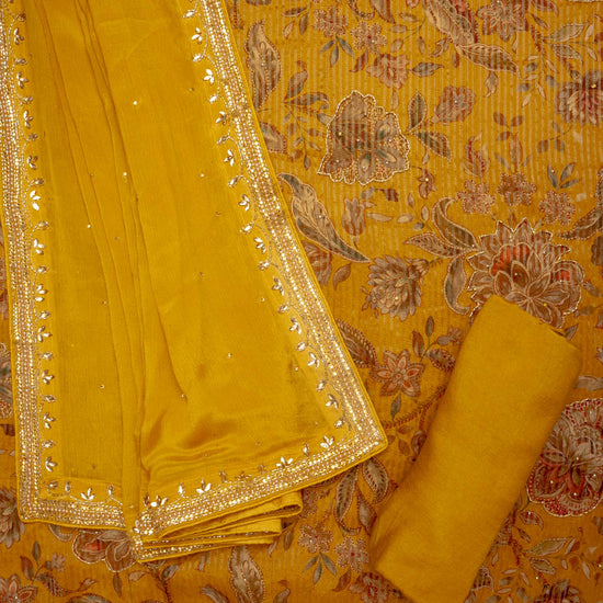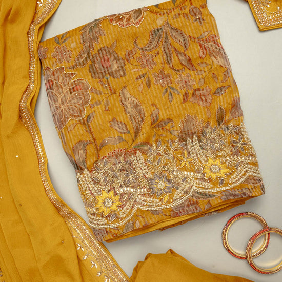 Panna Sunshine Charm Mustard Organza Unstitched Salwar Kameez With Chinon Dupatta