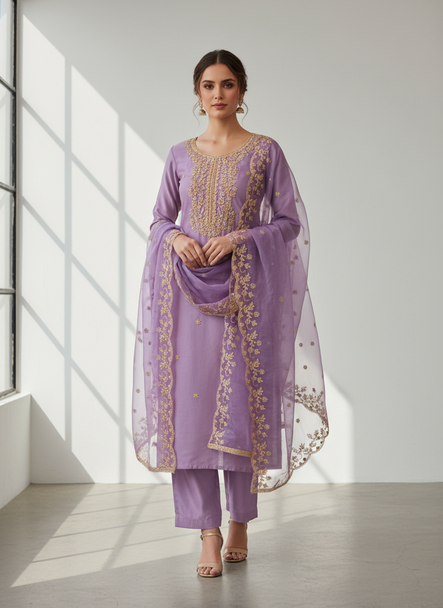 Redefine elegance with this stunning Crepe Unstitched Suit Set, crafted to bring together timeless tradition and contemporary charm. The soft, flowy crepe fabric offers a refined drape and effortless comfort, making it perfect for festive and occasion wear.