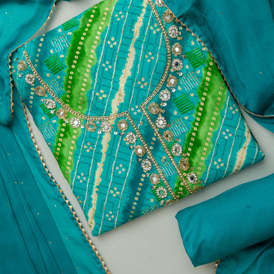 Panna Dive Into Elegance Firozi Cotton Unstitched Salwar Kameez & Chiffon Dupatta