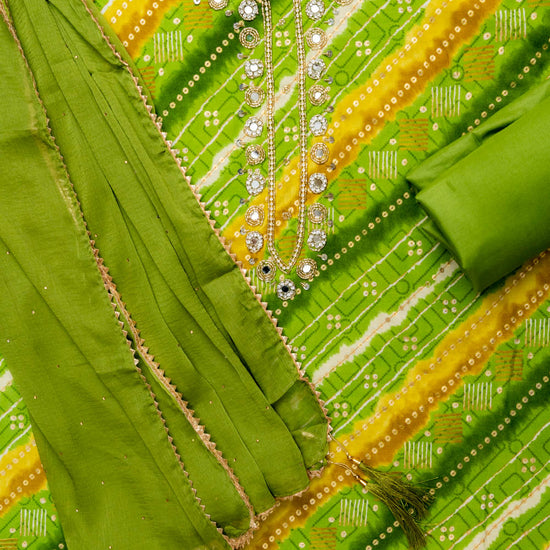 Panna Wrapped in Elegance Pista Cotton Unstitched Salwar Kameez & Chiffon Dupatta