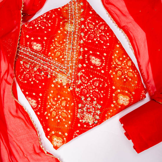 Panna Red Cotton Unstitched Salwar Suit With Chiffon Dupatta