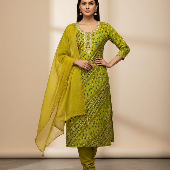 Wrapped in Elegance Pista Cotton Unstitched Salwar Kameez With Chiffon – The Panna Shop
