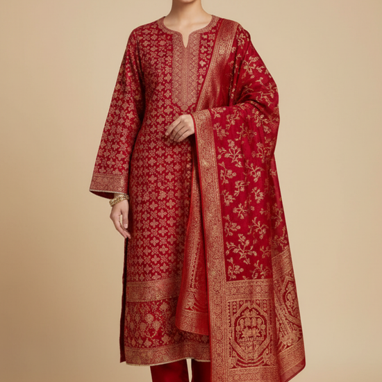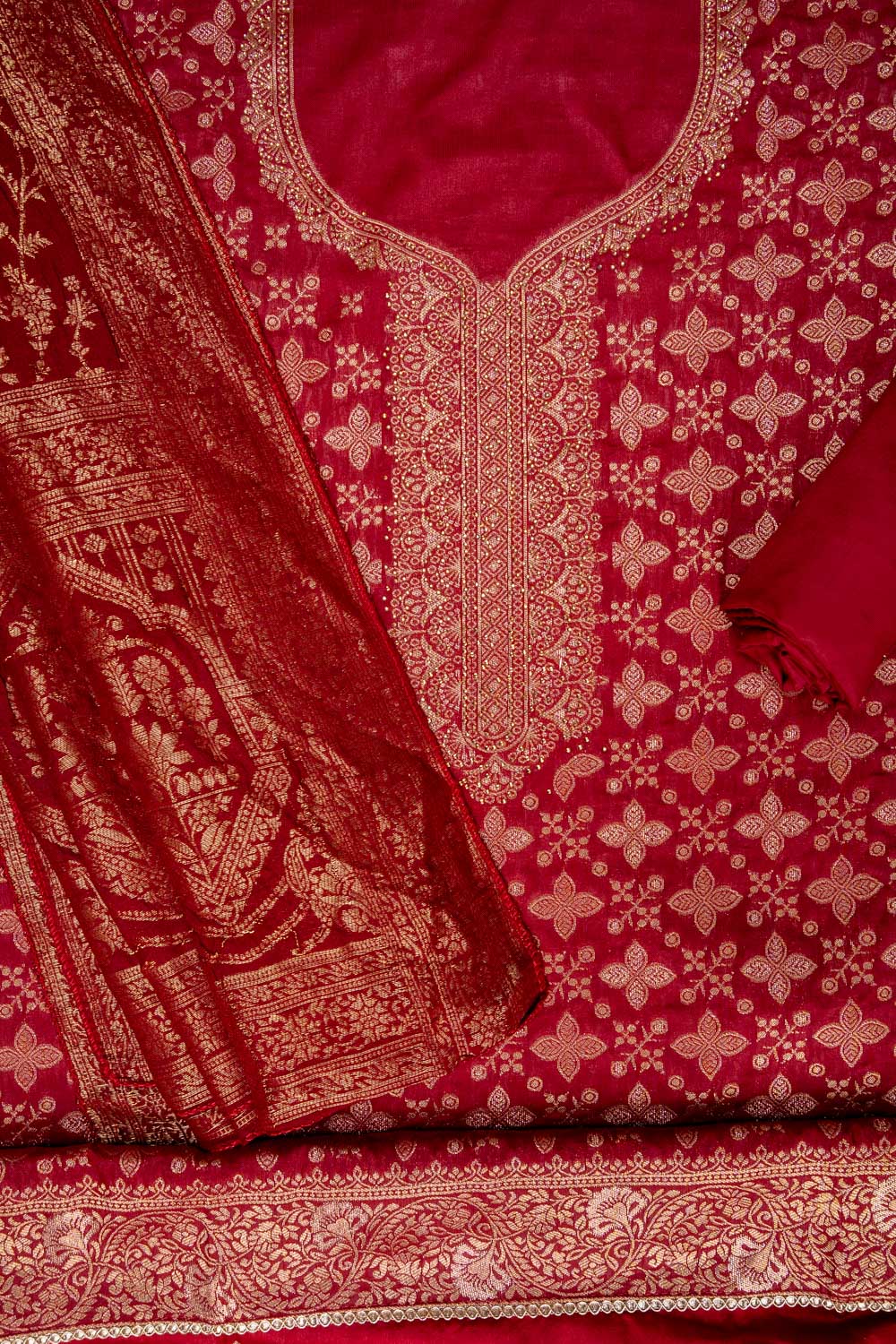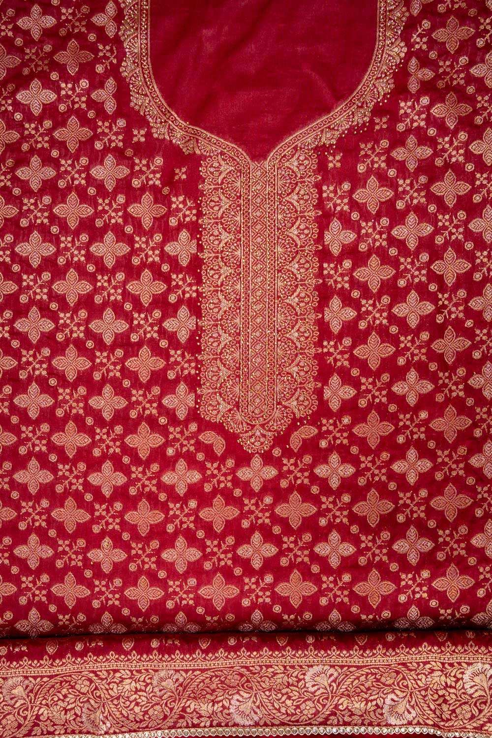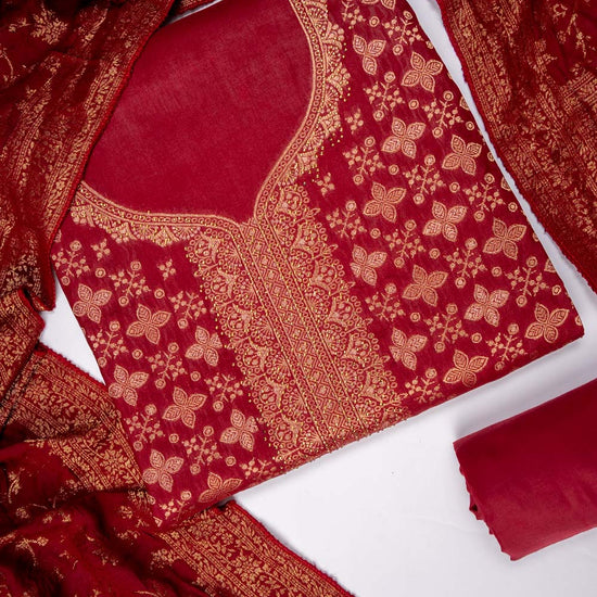 Panna Maroon Cotton Unstitched Salwar Suit With Cotton Dupatta