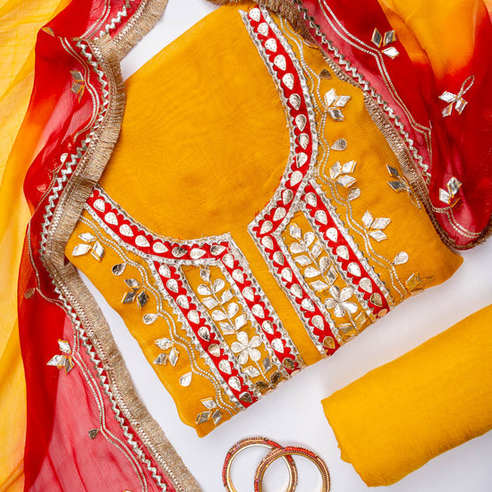 Crafted with premium Crepe, this suit set showcases Gotta Patti and is ideal for Formal Occasion. Maintain its quality with Dry Wash / Dry Clean.