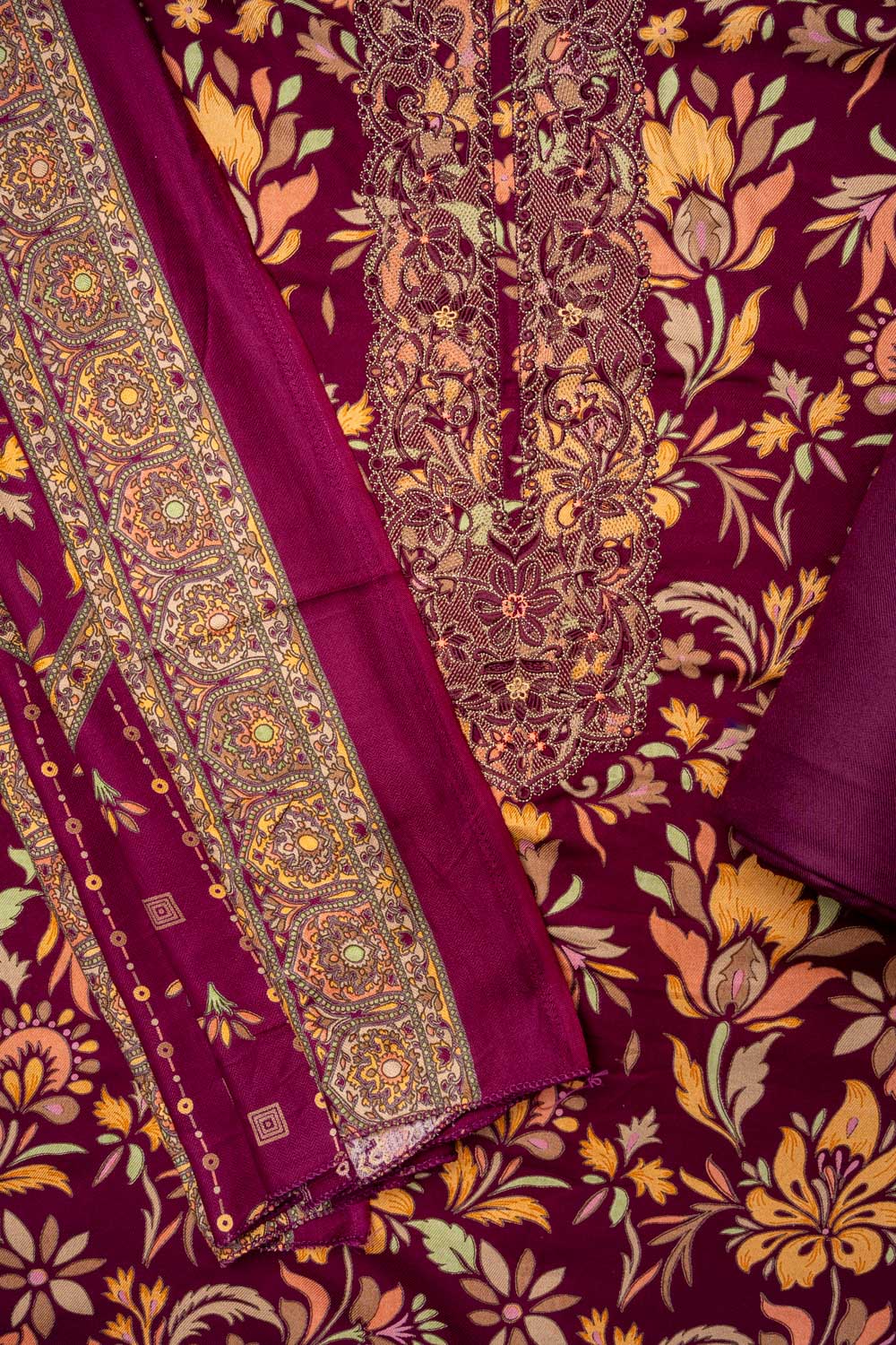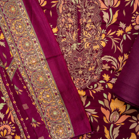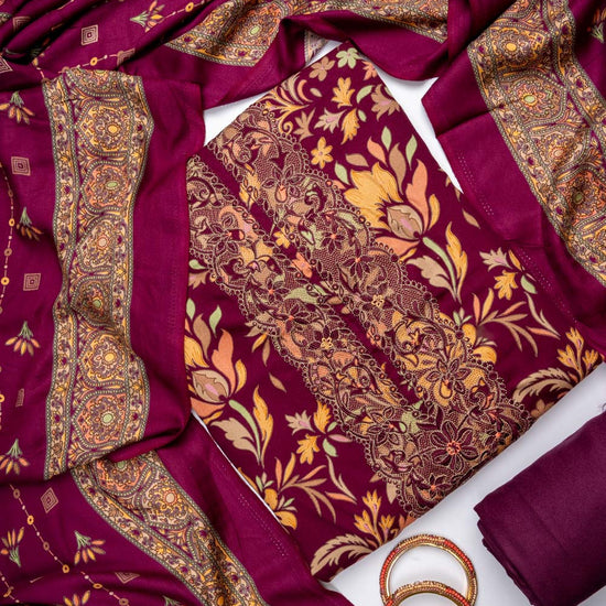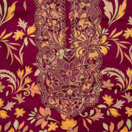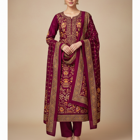 Panna Garnet Pashmina Unstitched Salwar Suit With Cotton Dupatta