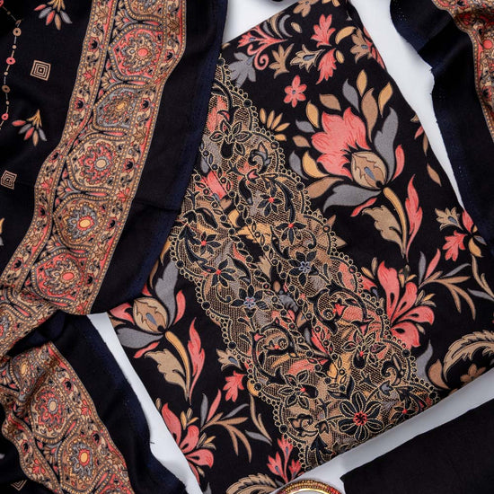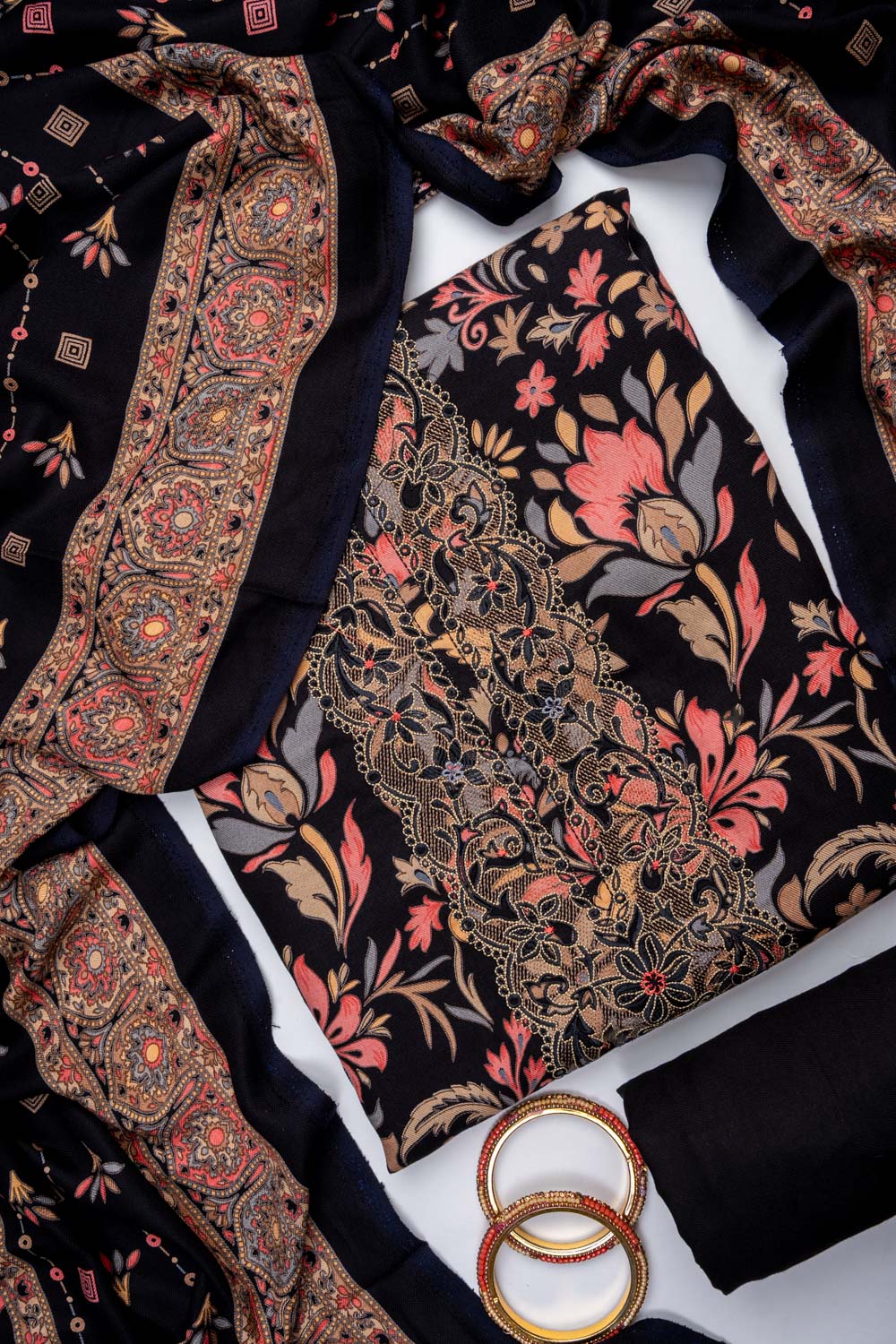 Panna Navy Blue Pashmina Unstitched Salwar Suit With Cotton Dupatta