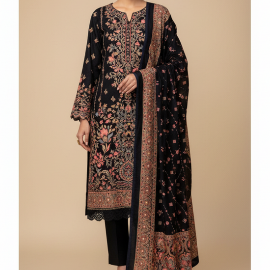 Made from Pashmina, this suit with Floral Print & Threadwork combines elegance with ease for Formal Occasion. Its Color Variations and tailoring options make it a wardrobe staple. Dry Wash / Dry Clean advised.