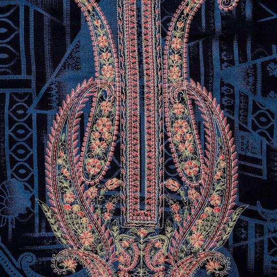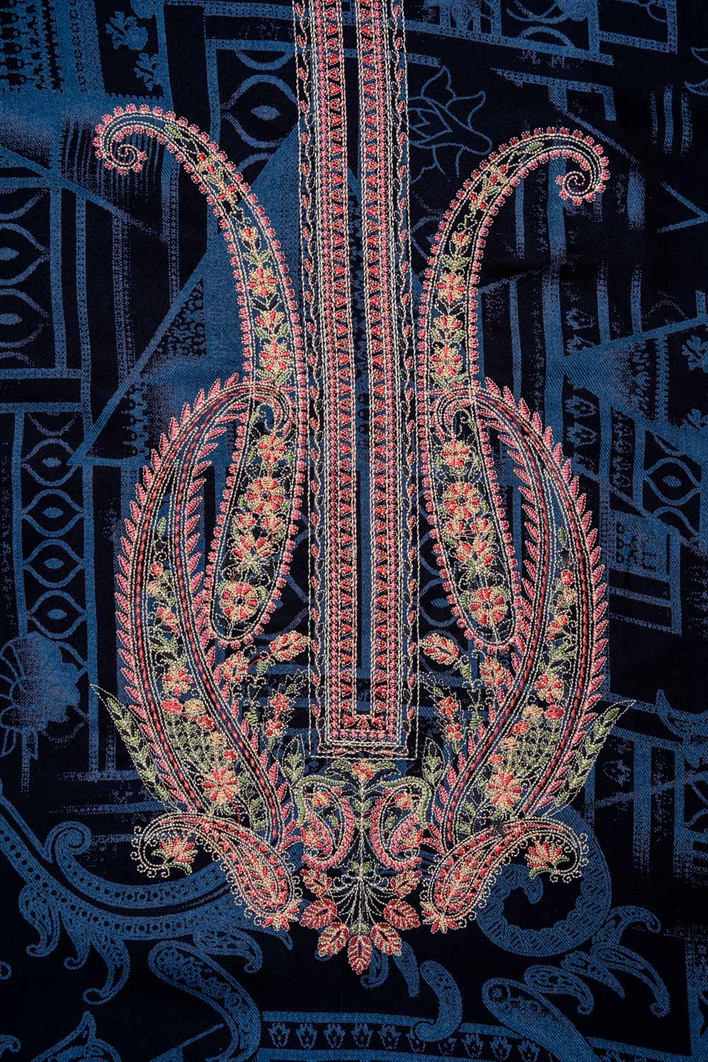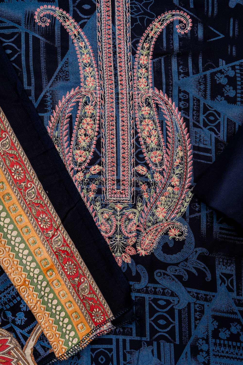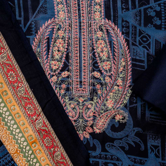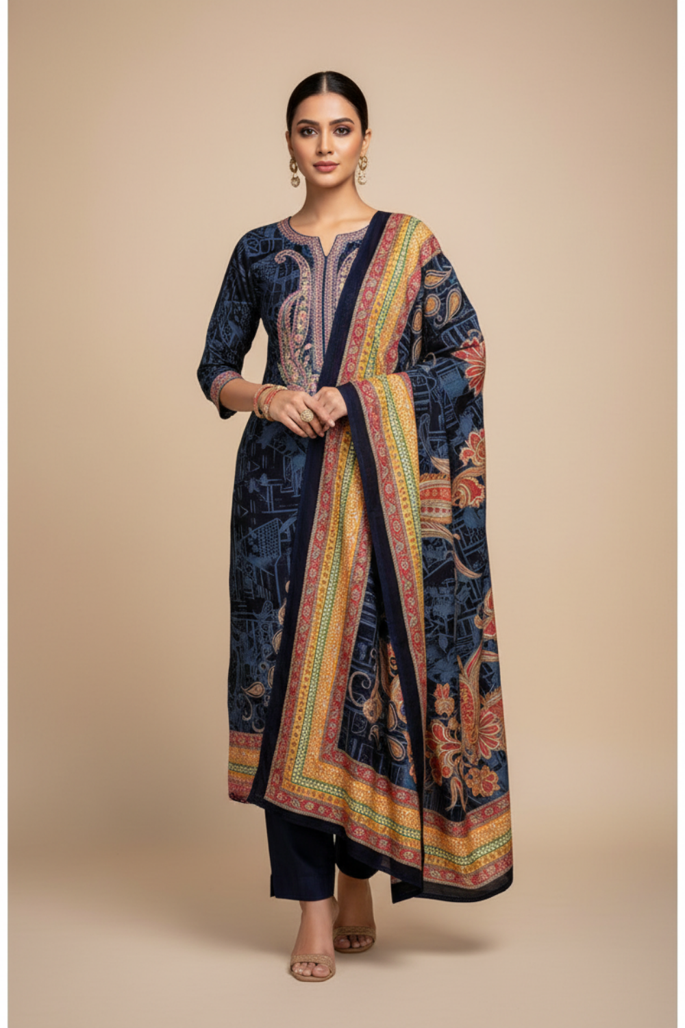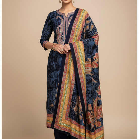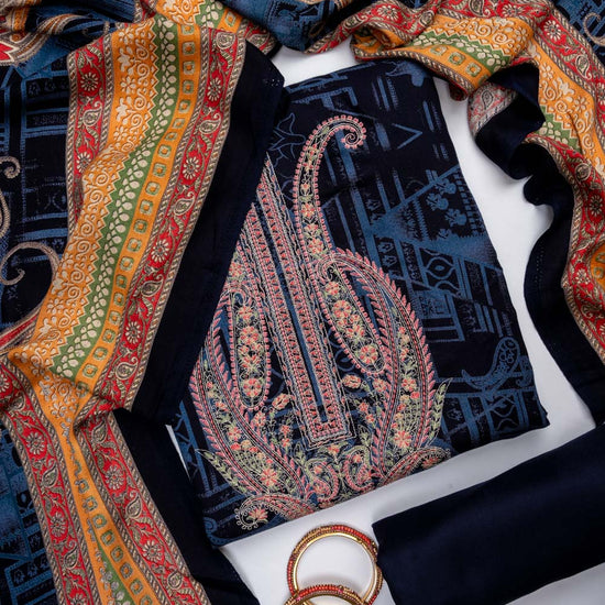 Panna Navy Blue Pashmina Unstitched Salwar Suit With Pashmina Dupatta
