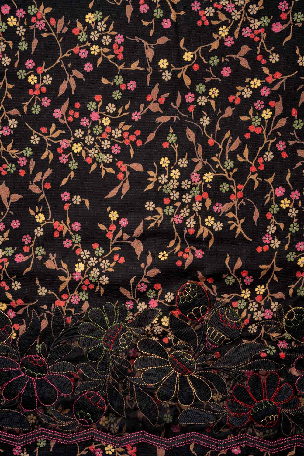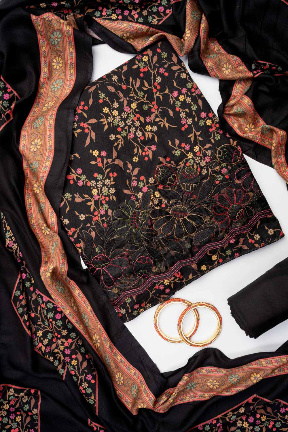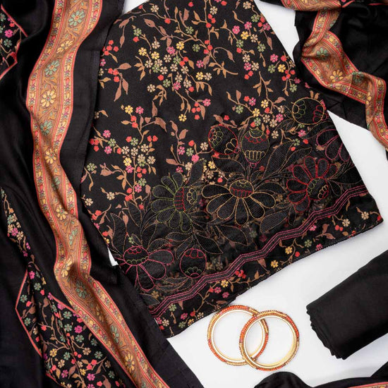 Panna Black Pashmina Unstitched Salwar Suit With Pashmina Dupatta