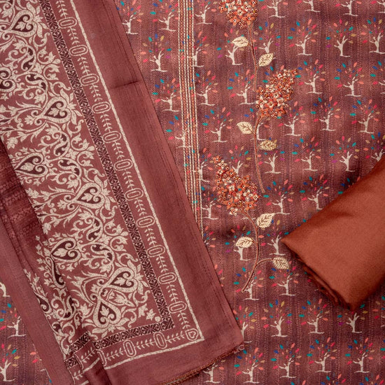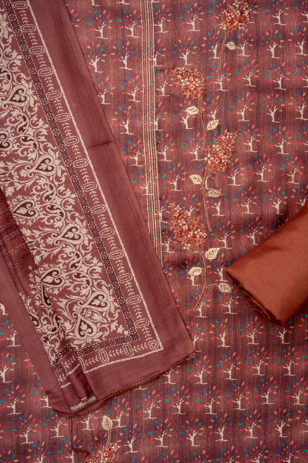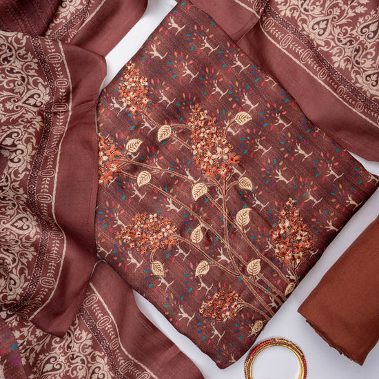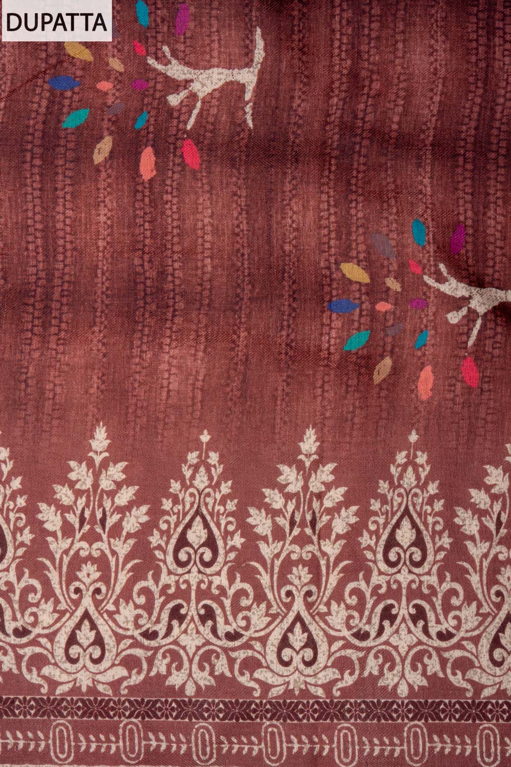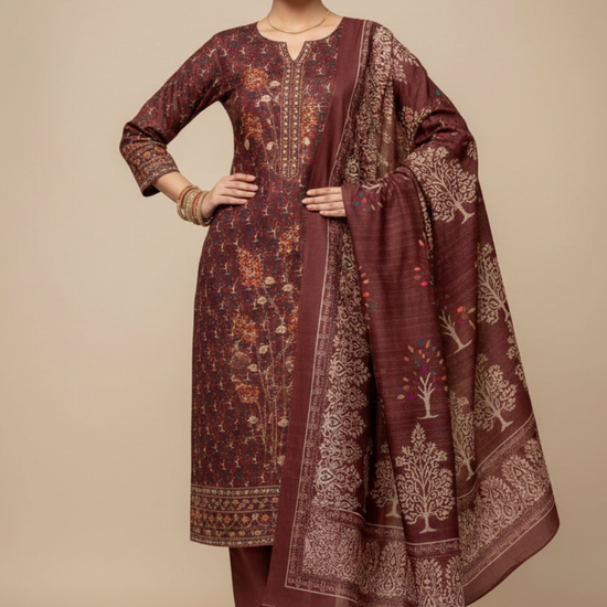 Panna Brown Pashmina Unstitched Salwar Suit With Pashmina Dupatta