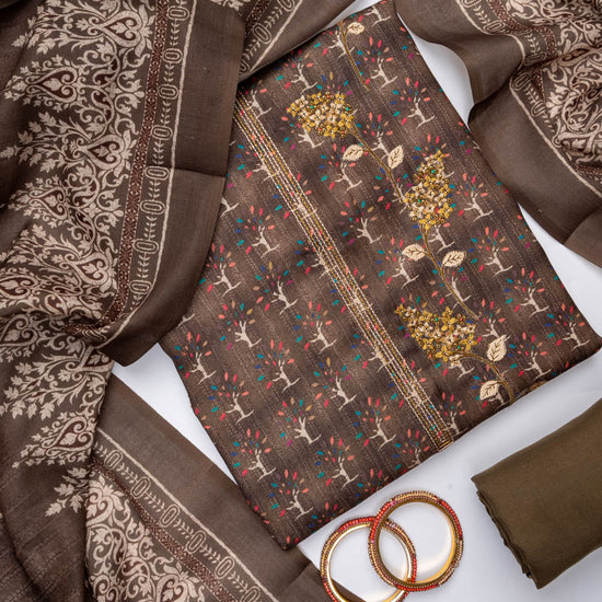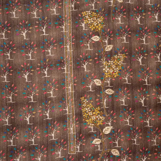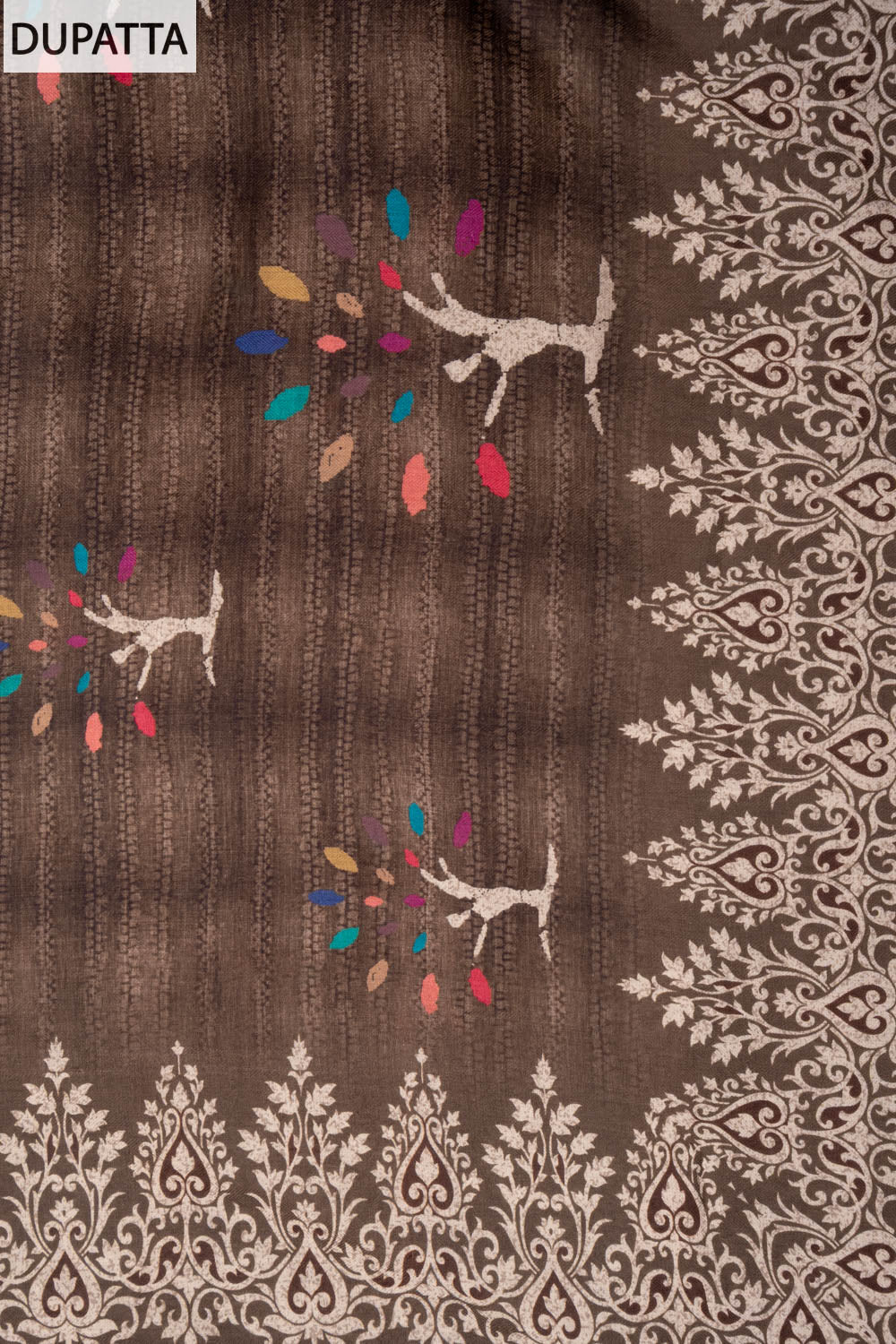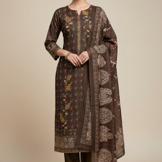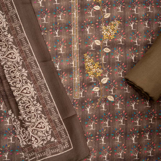 Panna Mouse Pashmina Unstitched Salwar Suit With Pashmina Dupatta