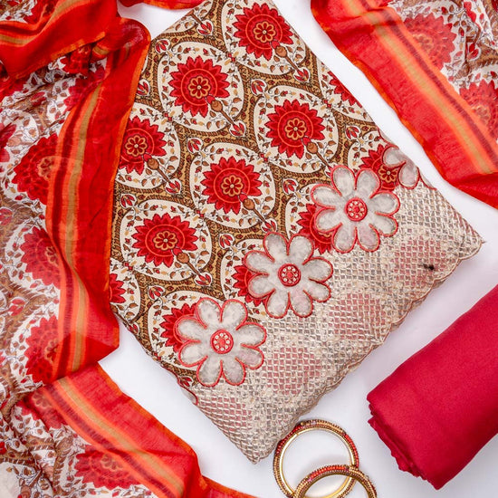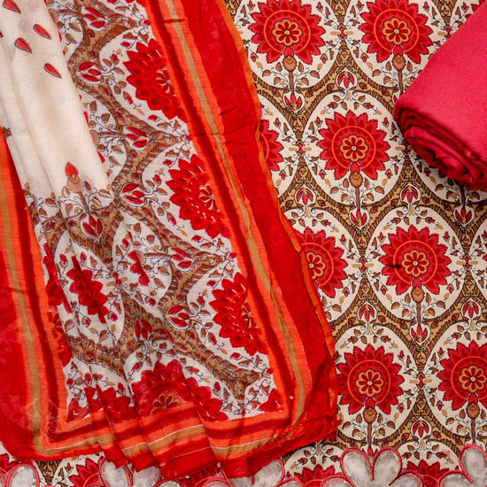 Panna Tussar Rust Pashmina Unstitched Salwar Suit With Cotton Dupatta