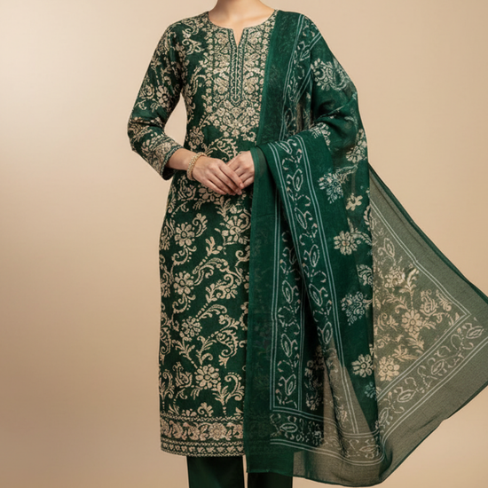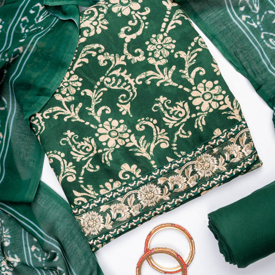 Panna Bottle Green Pashmina Unstitched Salwar Suit With Cotton Dupatta